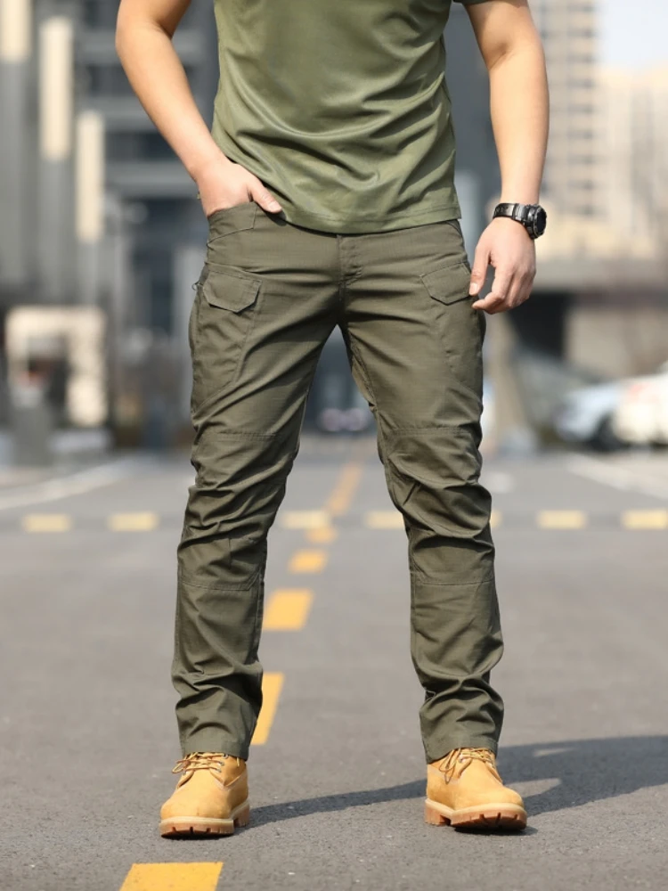 Pantalones tácticos para hombre Pantalones delgados Overoles para exteriores Pantalones casuales de entrenamiento recto-IX7 Negro, Verde militar M- 3XL