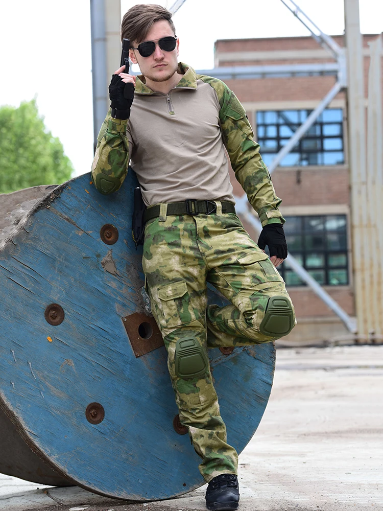 Pantalones tácticos + almohadillas Casual multibolsillos carga de combate con rodilleras Multicam CP Camo trabajo militar pantalones de caza ropa