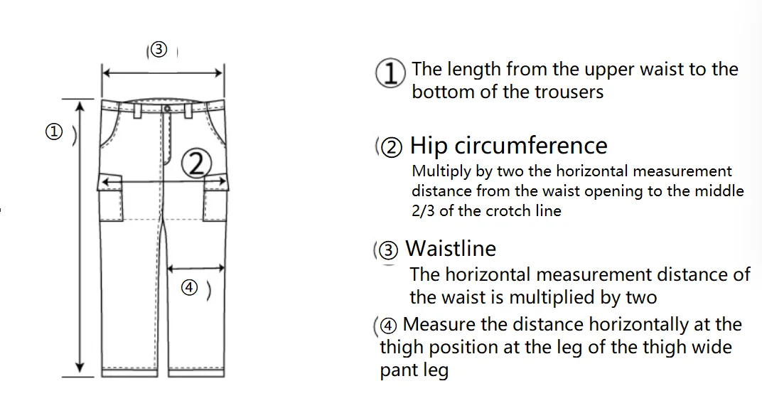 Distancia de medición horizontal de posición de pierna de Pantalón ancho de muslo