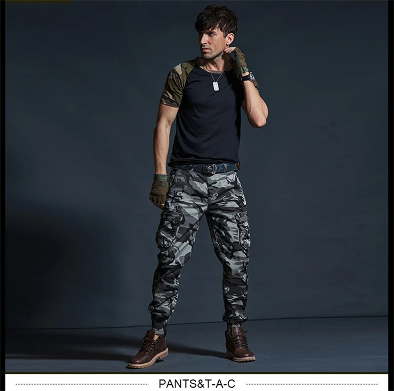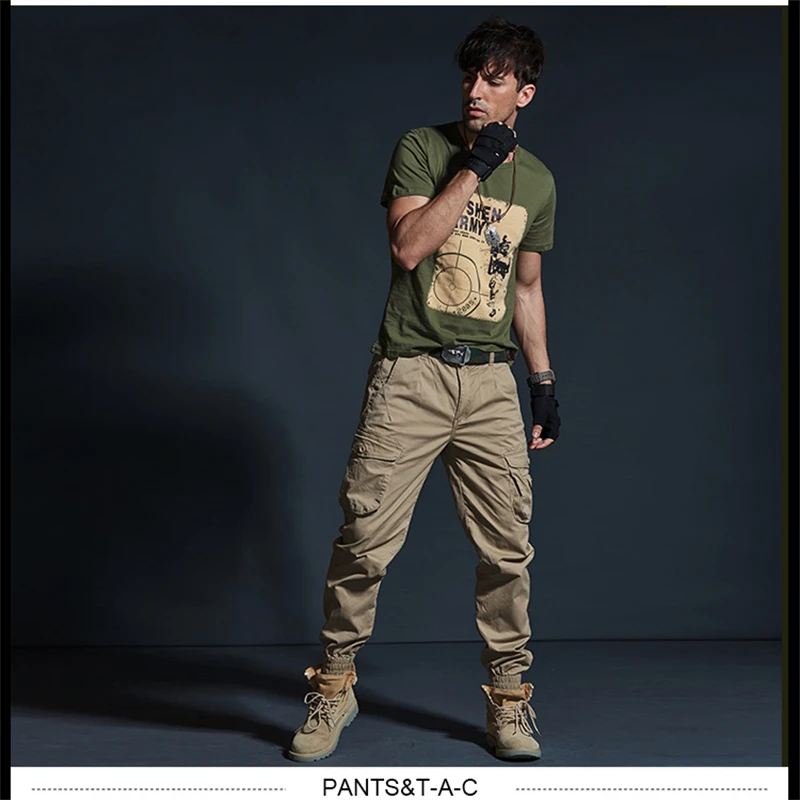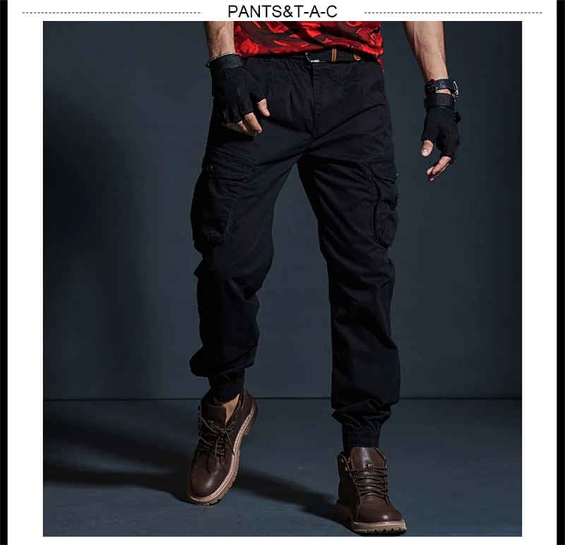 Pantalones tácticos de camuflaje para hombre, pantalones Cargo de alta calidad, color caqui, con múltiples bolsillos, a la moda, color negro, para correr al aire libre