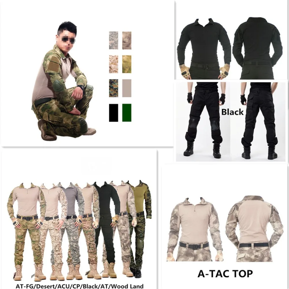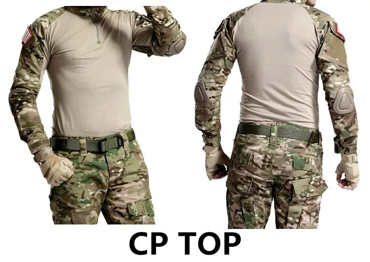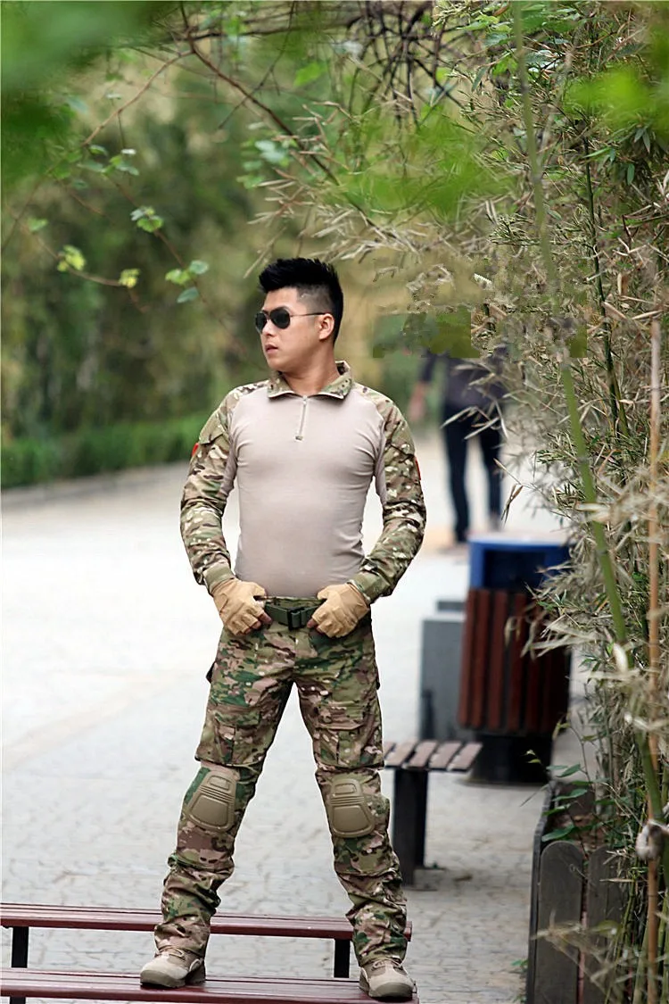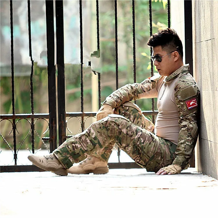 Ropa táctica de camuflaje, pantalones cargo de paintball, pantalones de combate, camisa táctica MC con rodilleras