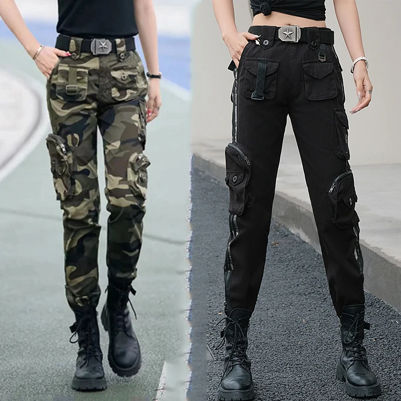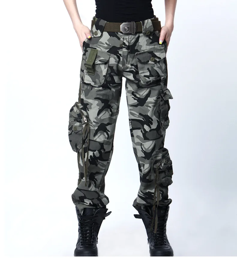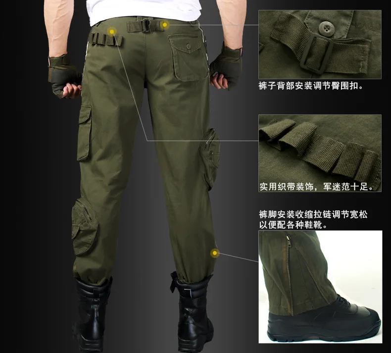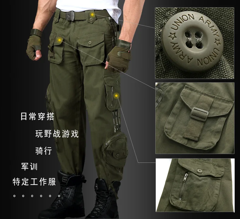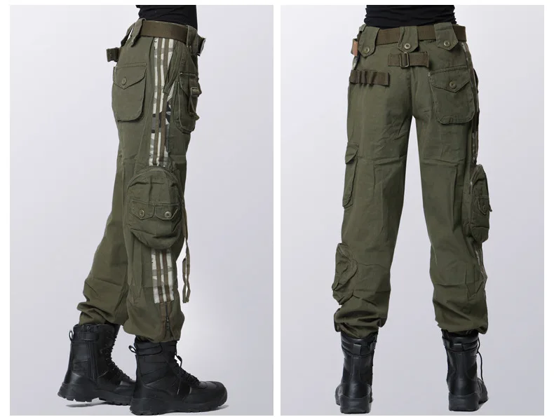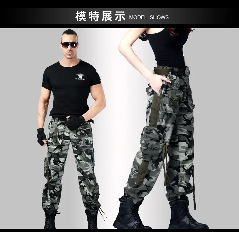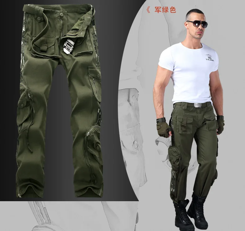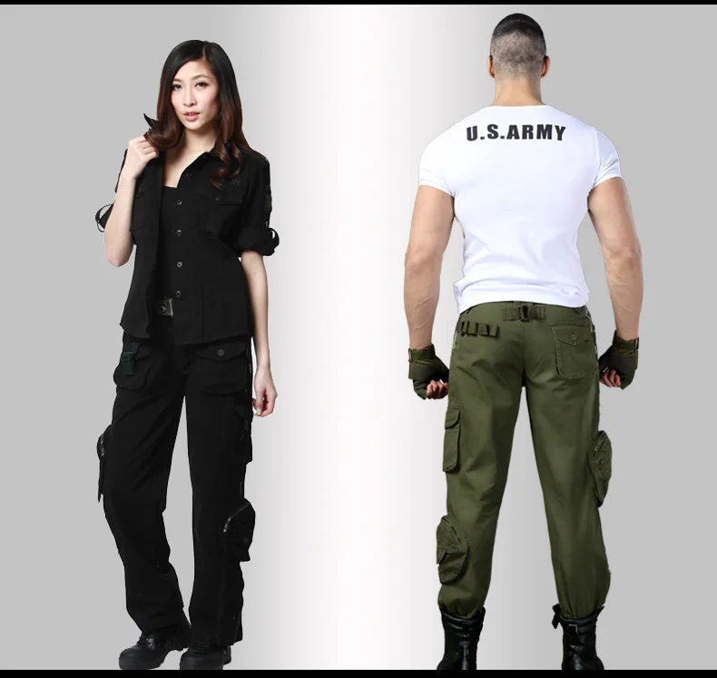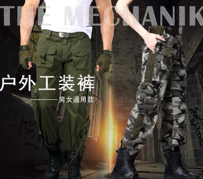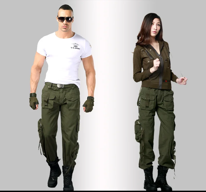 Pantalones tácticos de camuflaje verde militar con múltiples bolsillos hombres mujeres transpirable resistente al desgaste de algodón sueltos Pantalones rectos monos Casuales