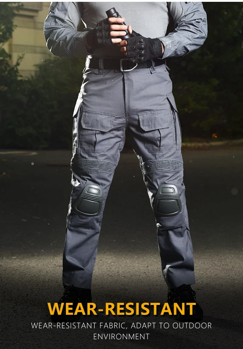 Pantalones de combate G3, pantalones tácticos con rodilleras, pantalones de camuflaje CP, ropa de caza Airsoft, pantalones Airsoft, elasticidad para hombres Material:60% algodón + 40% poliéster