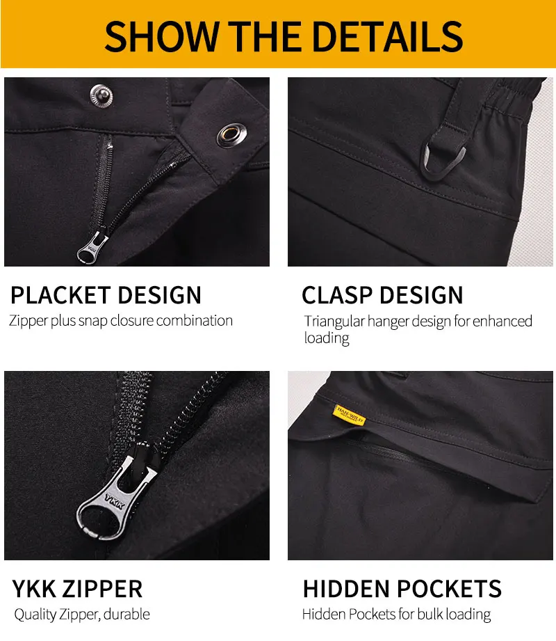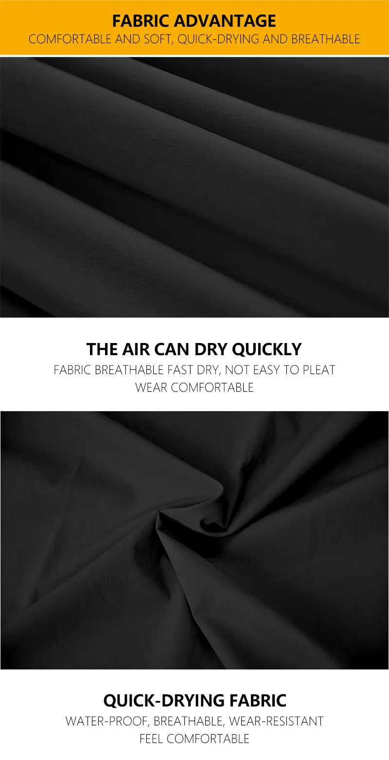 Característica: 1. Tejido transpirable y seco Material de nailon spandex con alta elasticidad, repelente al agua, transpirable, resistente al desgaste, lavable, etc., cómodo al tacto 2.Cremallera de calidad con cremallera YKK, duradera, dos bolsillos laterales con cremallera, doble costura 3. Diseño de botón de control de acceso, simple y hermoso, moderno y generoso. 4.2 bolsillos ocultos con cremallera de gran capacidad