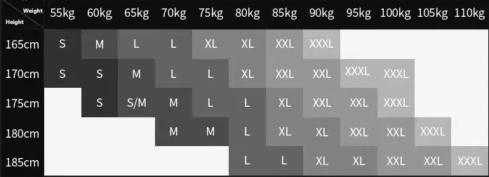 Consulte la siguiente tabla para elegir el tamaño como su peso y altura.