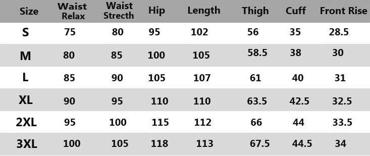 Tabla de tallas de pantalón en cm, tolerancia de 1-2cm