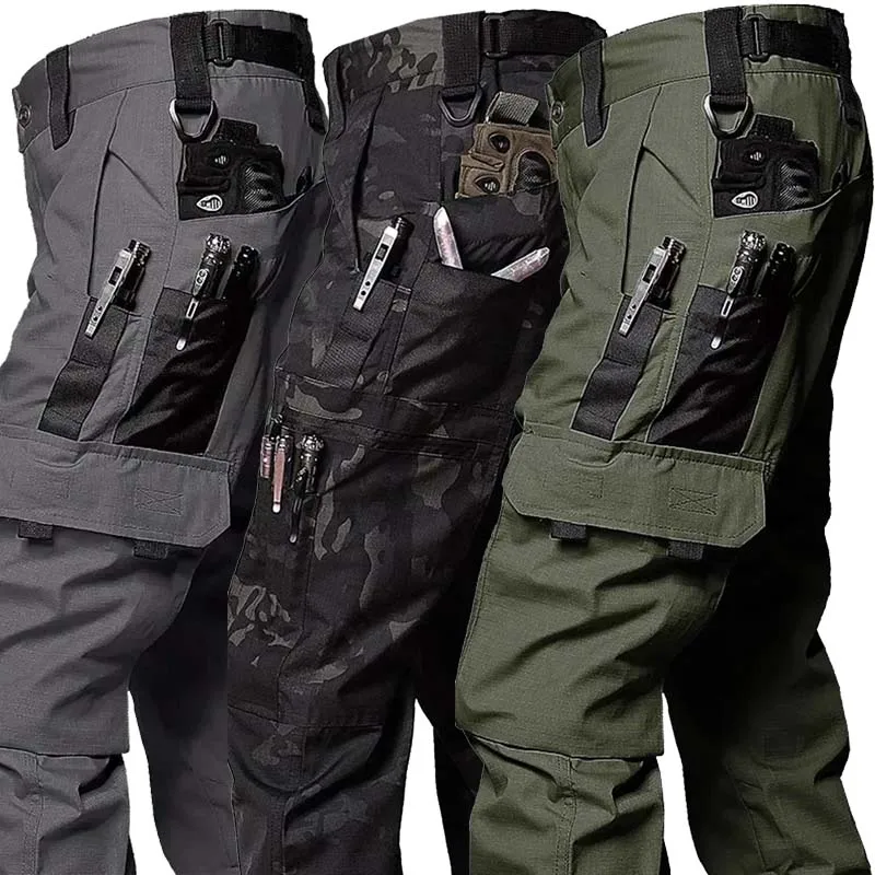 Pantalones tácticos para hombre, pantalones de caza de carga impermeables para exteriores, ropa de trabajo, pantalones de entrenamiento informales con múltiples bolsillos y resistentes al desgaste