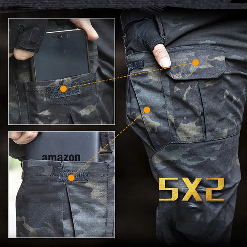 Pantalones tácticos informales para hombre, Pantalón Cargo elástico con múltiples bolsillos, negro, verde, impermeable, transpirable, para senderismo al aire libre