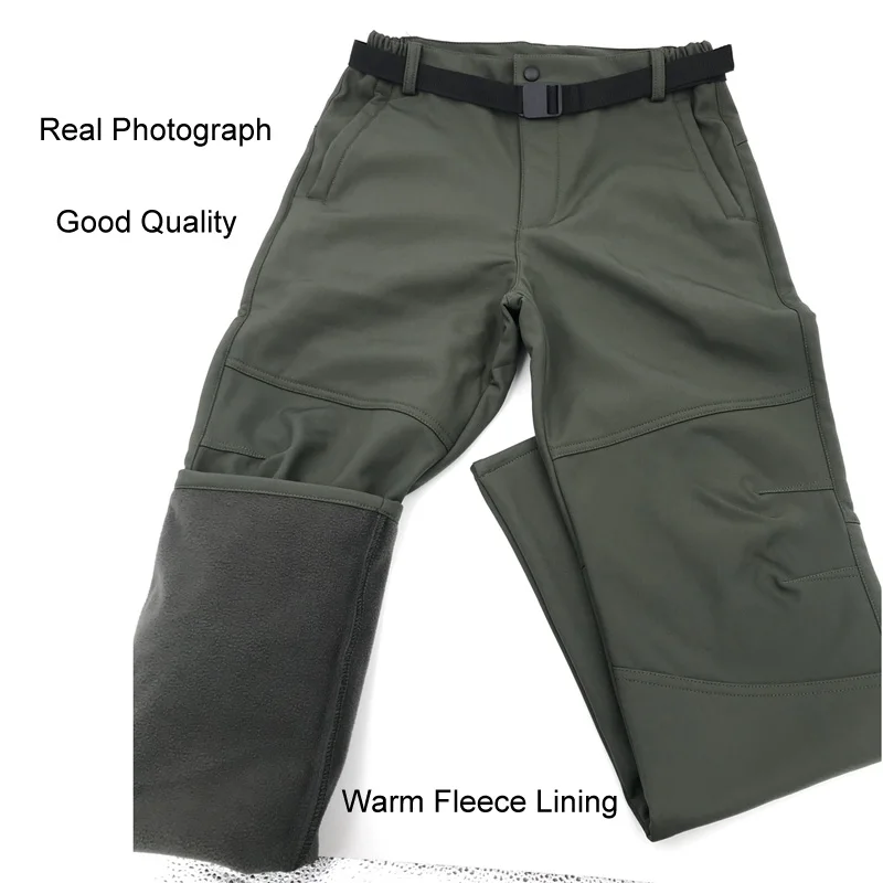 Pantalones tácticos militares Cargo para hombre, pantalones de lana impermeables para senderismo, Camping, escalada, pantalones informales elásticos de piel de tiburón para invierno y otoño