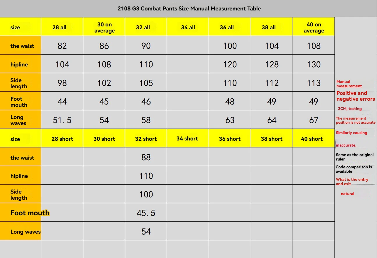 Embalaje: 1 * pantalones tácticos