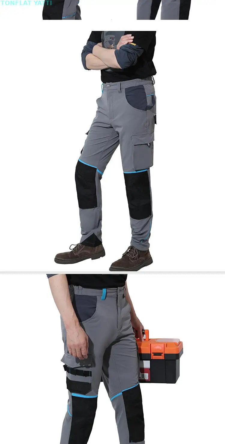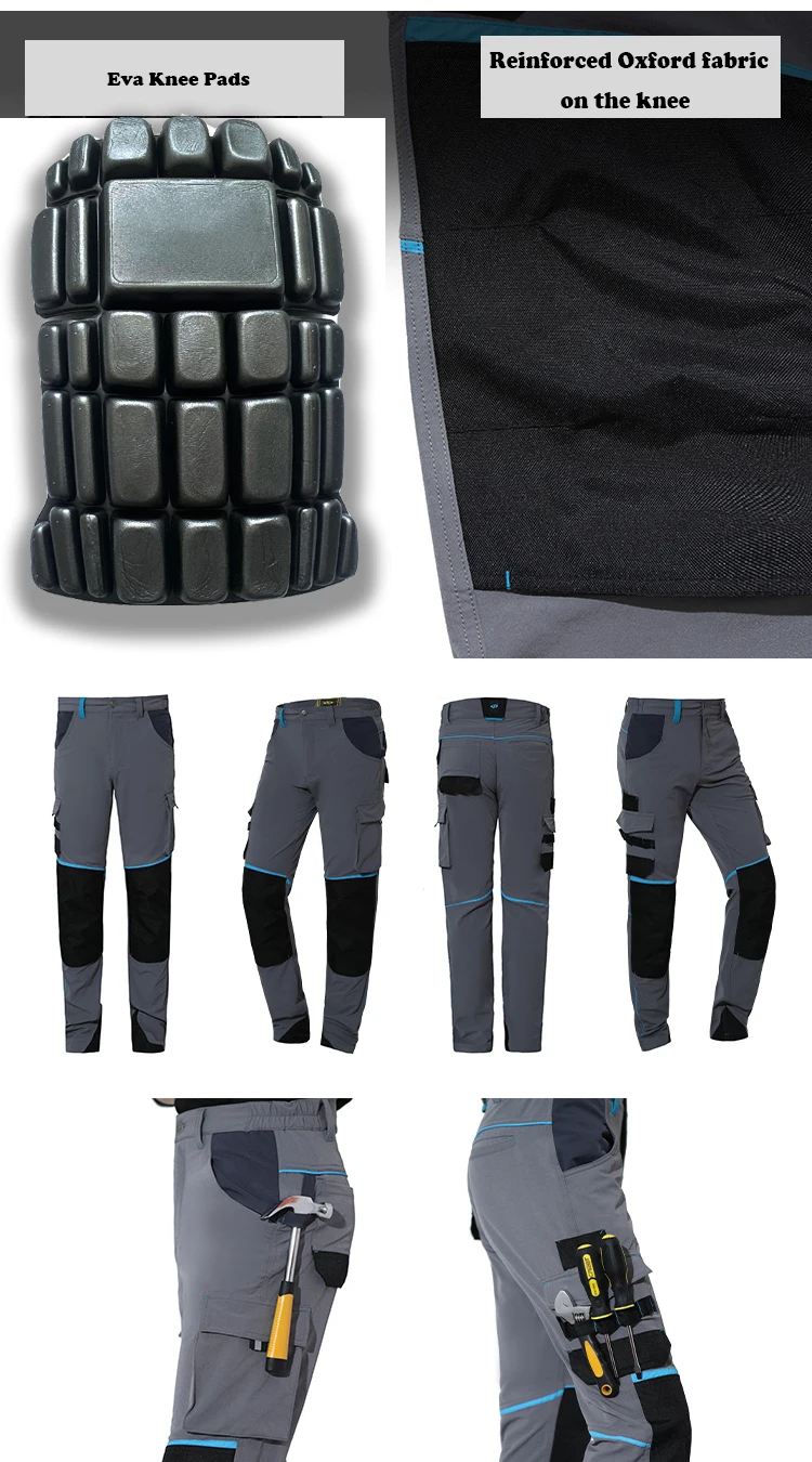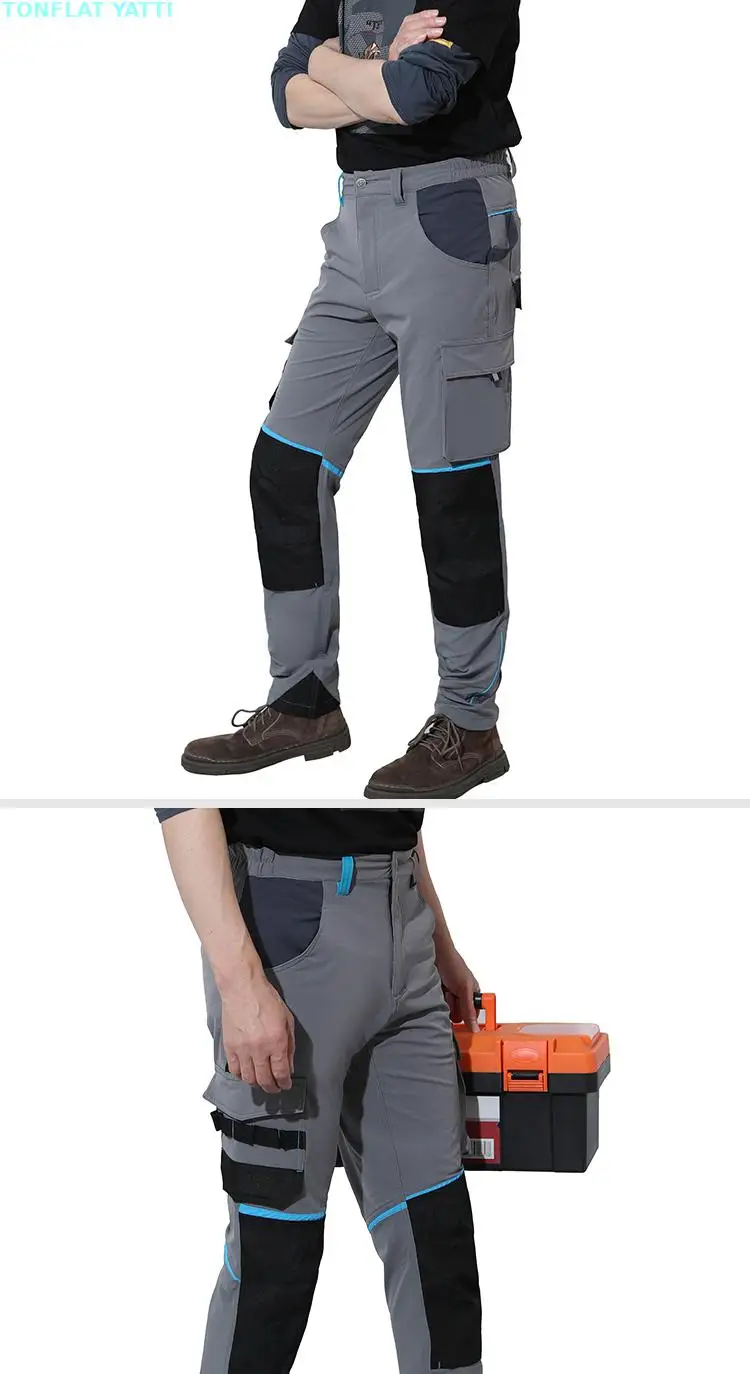 Pantalones de trabajo de alta elasticidad, pantalones de senderismo resistentes al desgaste con múltiples bolsillos, pantalones de trabajo, pantalones de trabajo para hombres con rodilleras