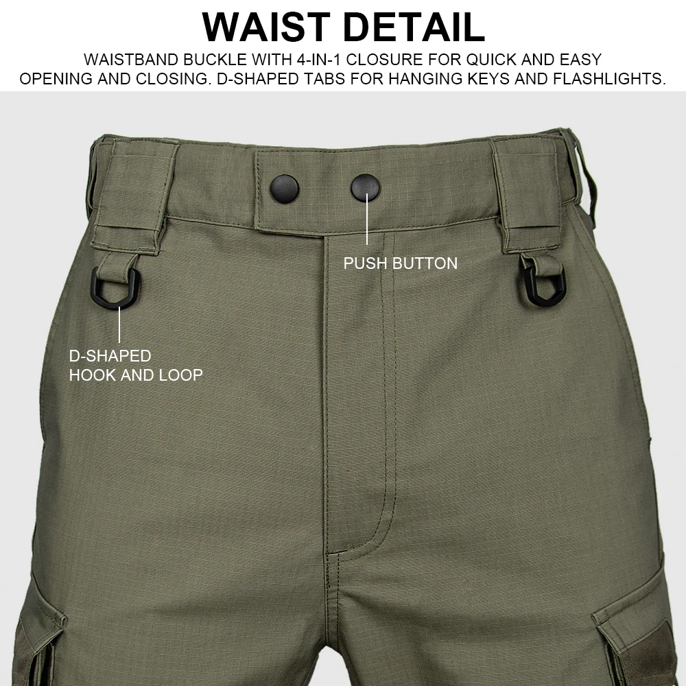 Pantalones de trabajo tácticos para hombre, corte 3D, impermeable, hebilla en D, cintura ajustable, elástico oculto, 8 bolsillos, puño reforzado, Camping y pesca