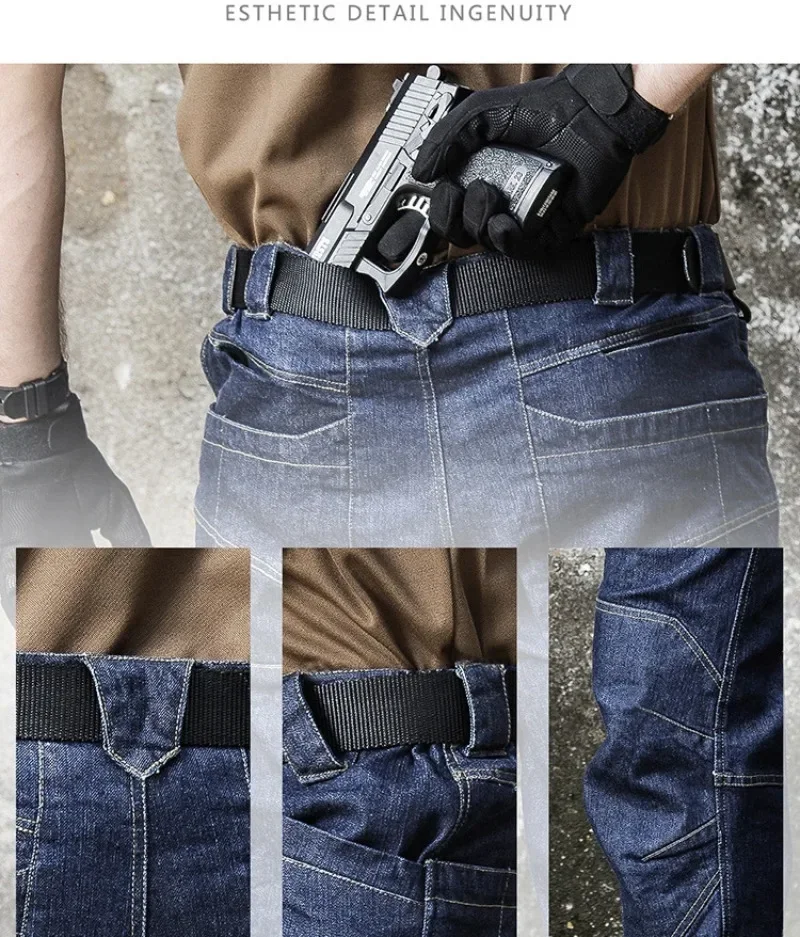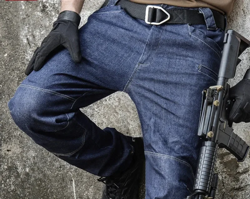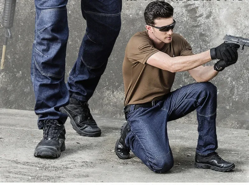 Pantalones vaqueros Cargo tácticos para hombre, pantalón de trabajo para deportes al aire libre, elásticos, rectos, resistentes al desgaste, multibolsillo, combate militar