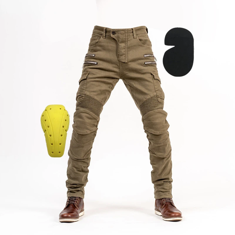 Pantalones vaqueros para montar en motocicleta para hombre, pantalón con múltiples bolsillos y rodilleras, informal, sólido, a la moda, novedad
