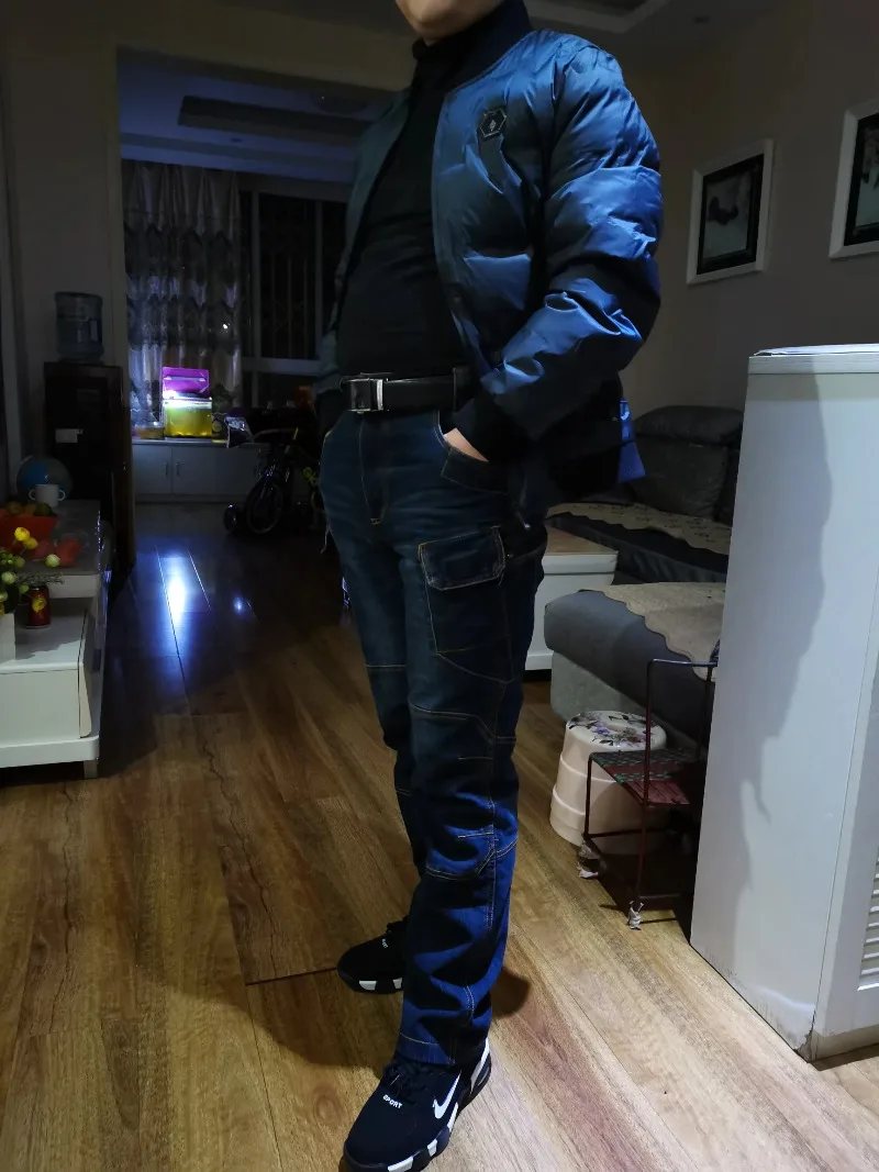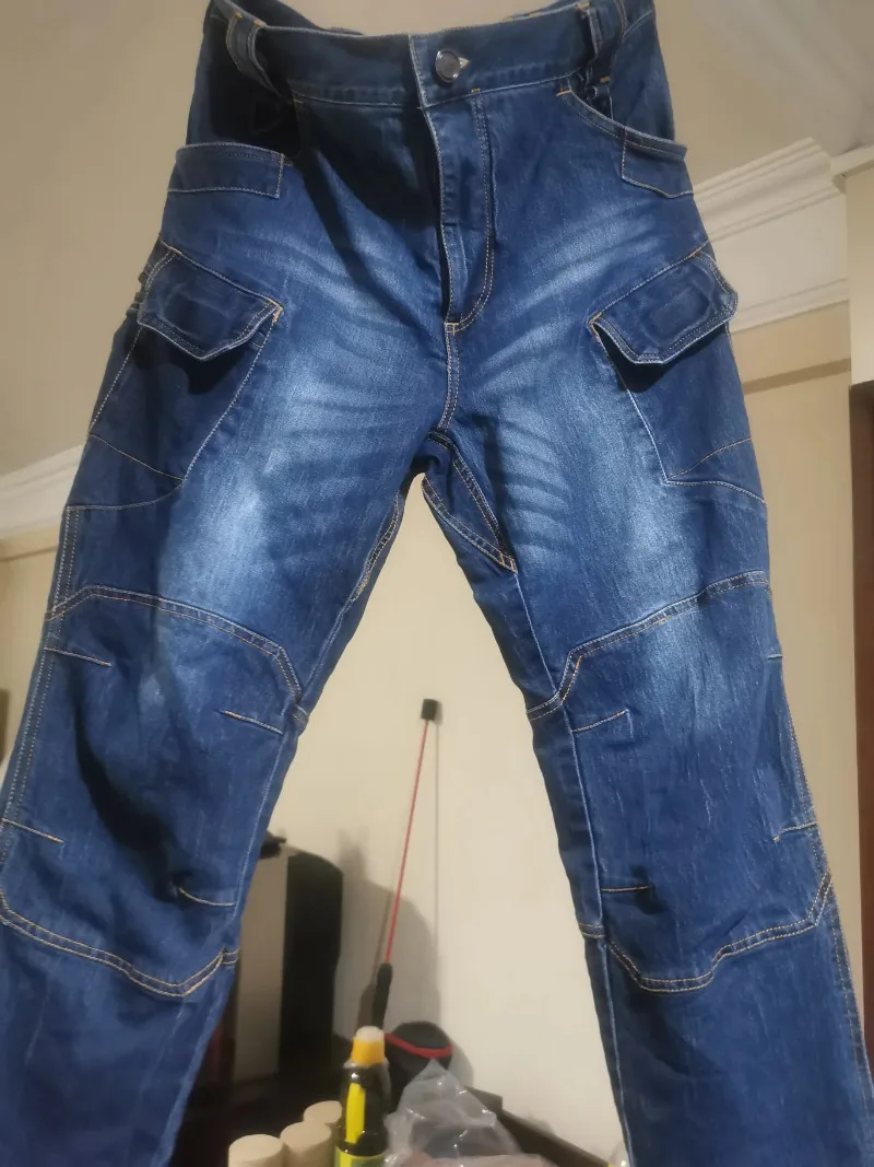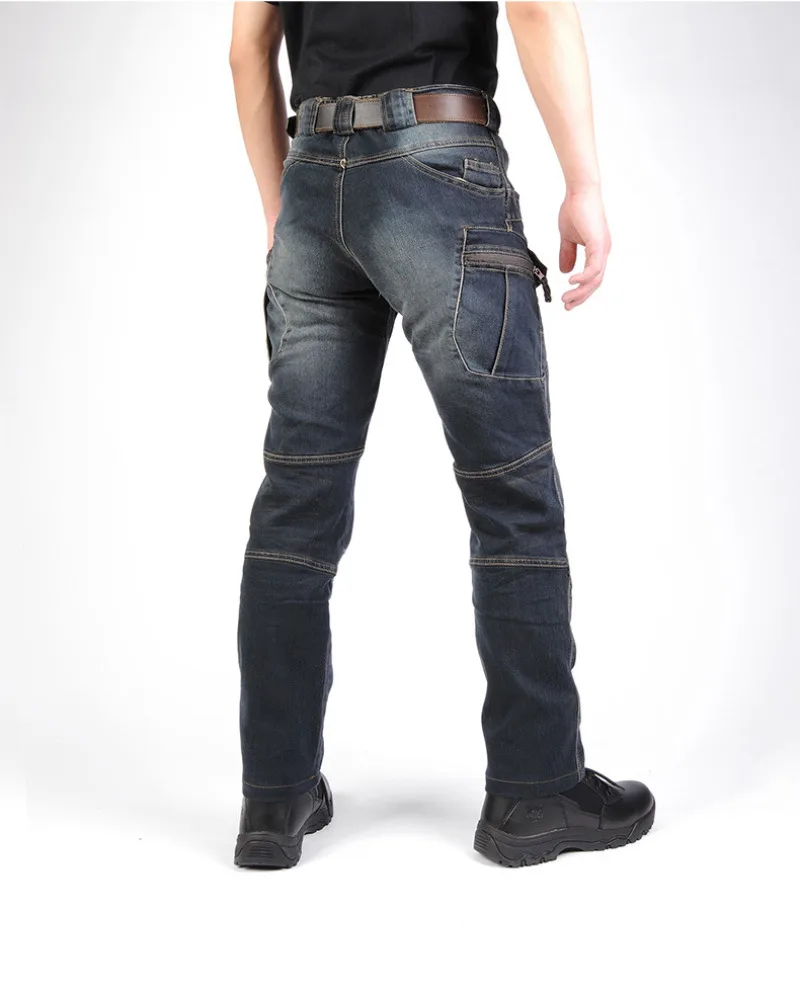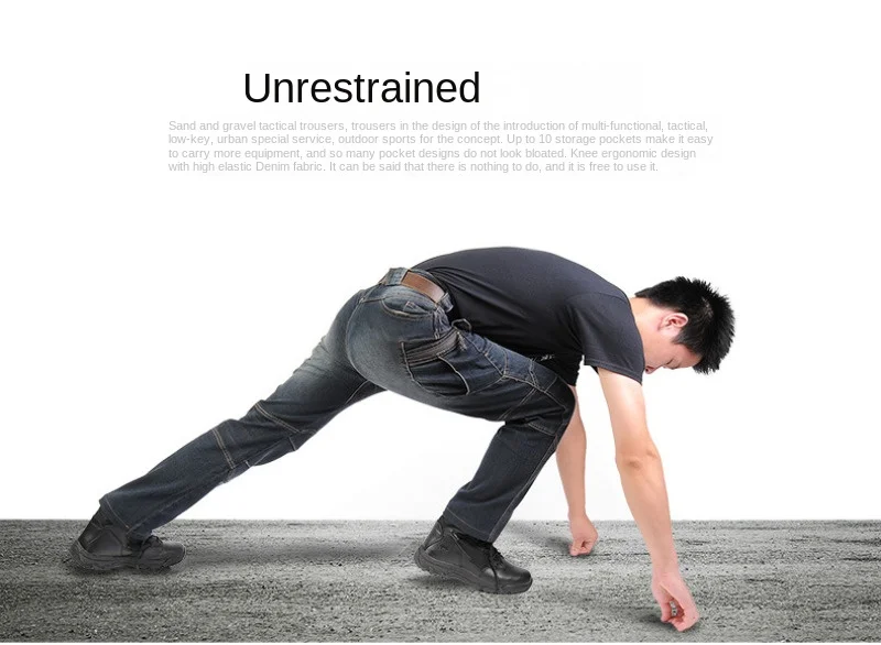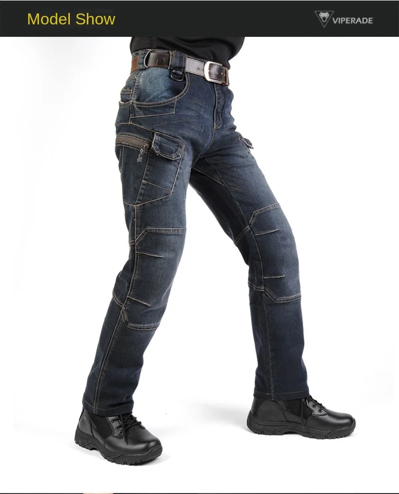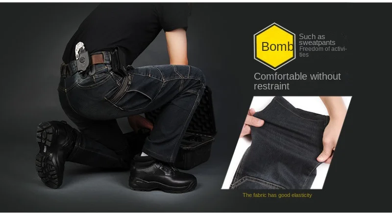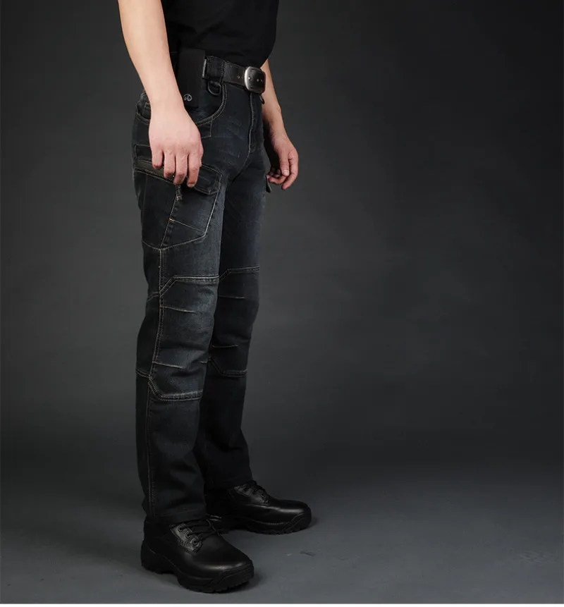 Pantalones vaqueros rectos para hombre, pantalones elásticos ajustados, resistentes al desgaste, múltiples bolsillos, entrenamiento táctico para senderismo al aire libre, color azul
