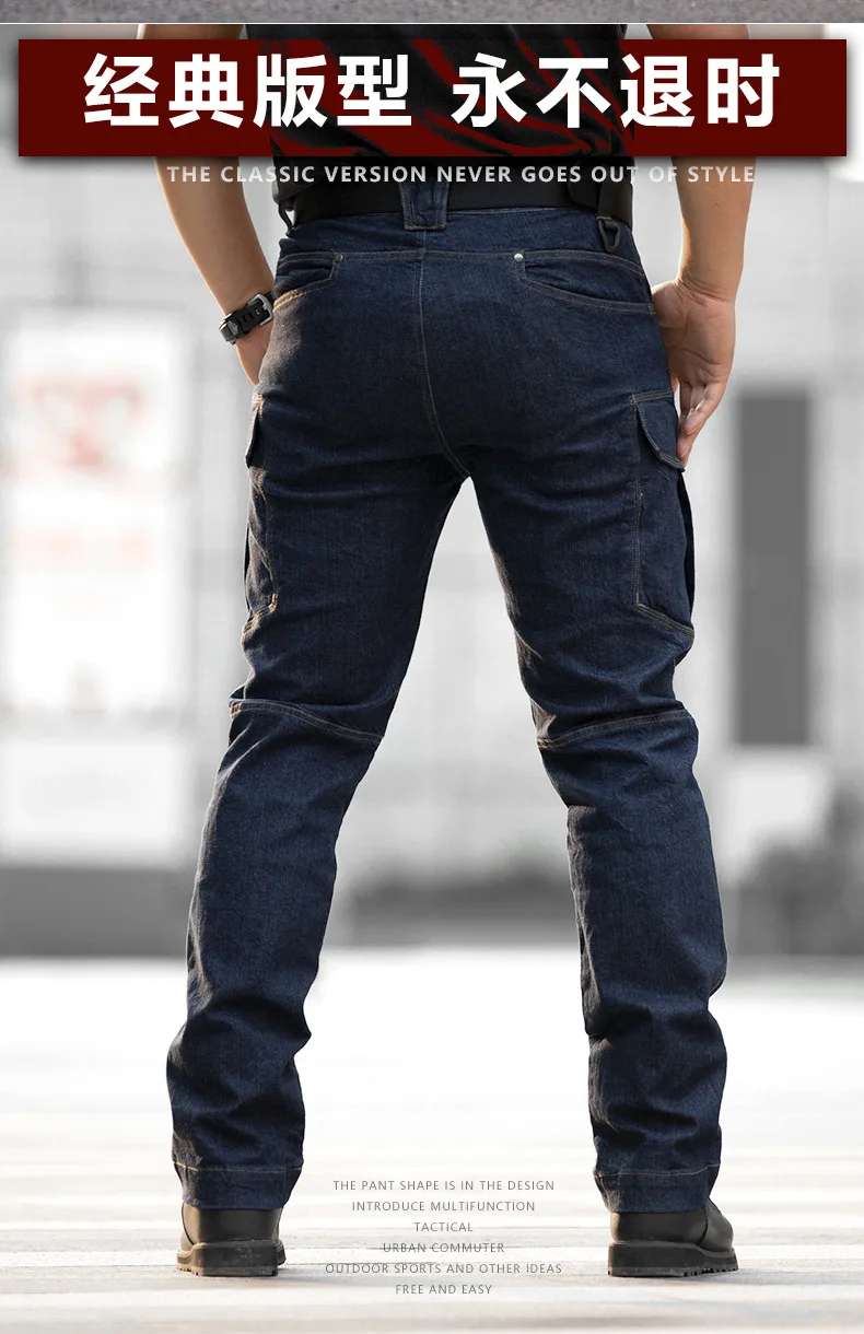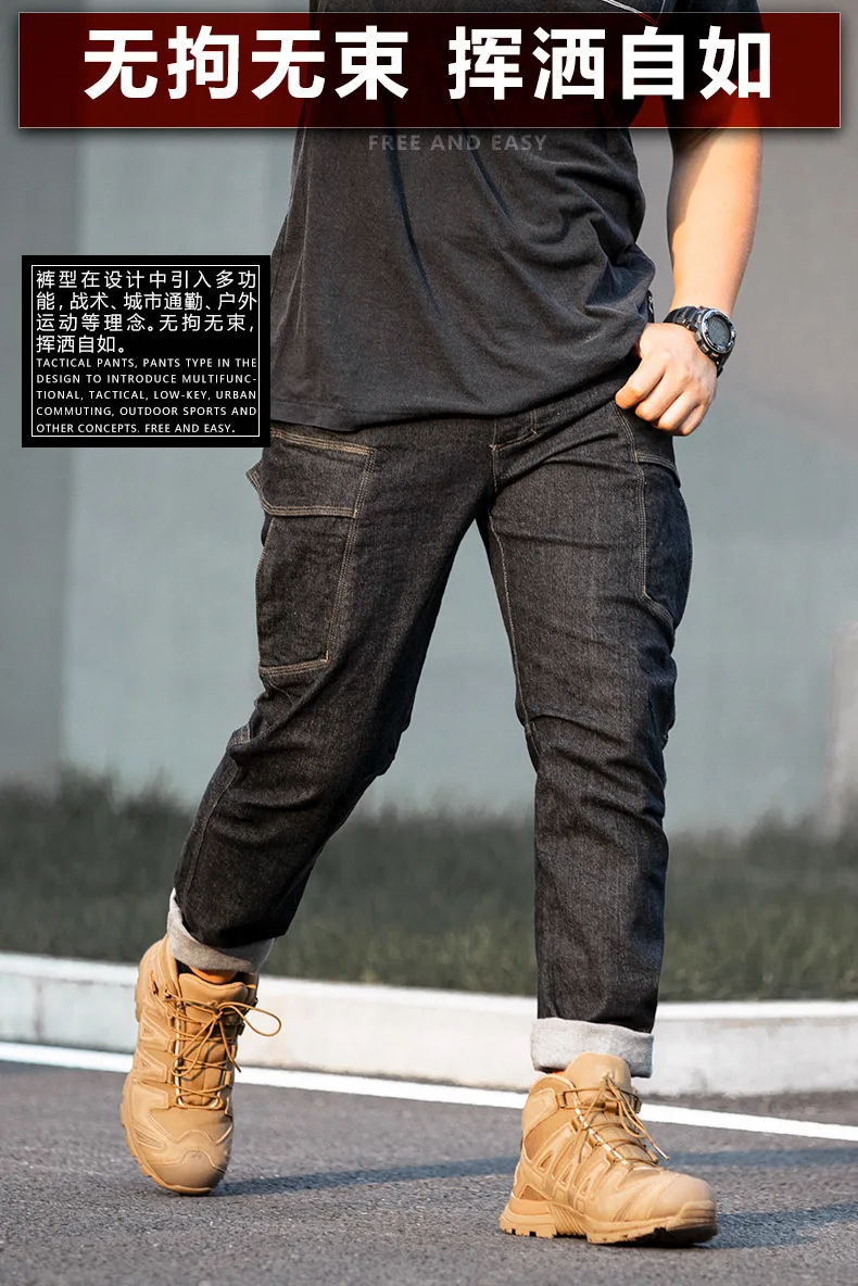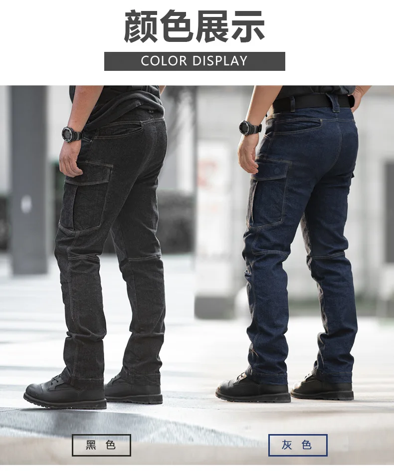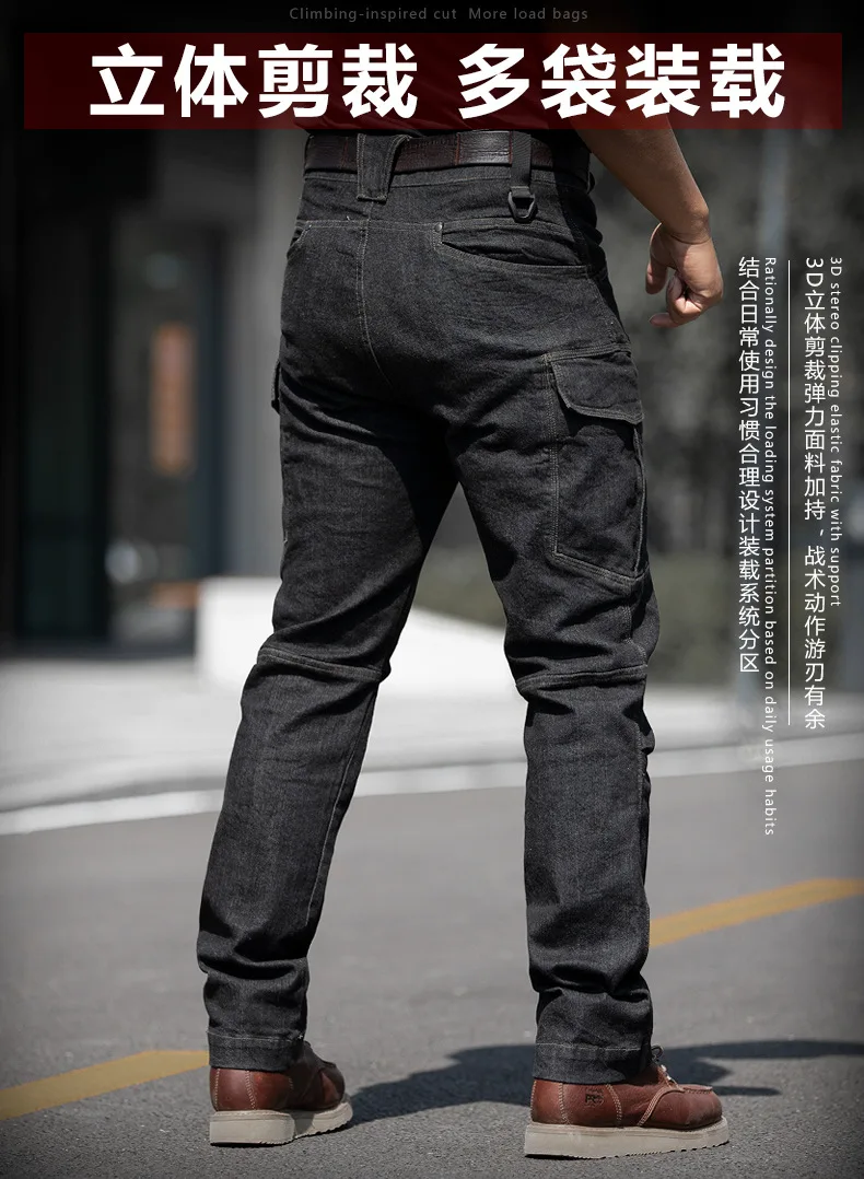 Pantalones de mezclilla tácticos para exteriores, pantalones elásticos resistentes al desgaste con múltiples bolsillos, monos, senderismo, entrenamiento militar, pantalones vaqueros de combate