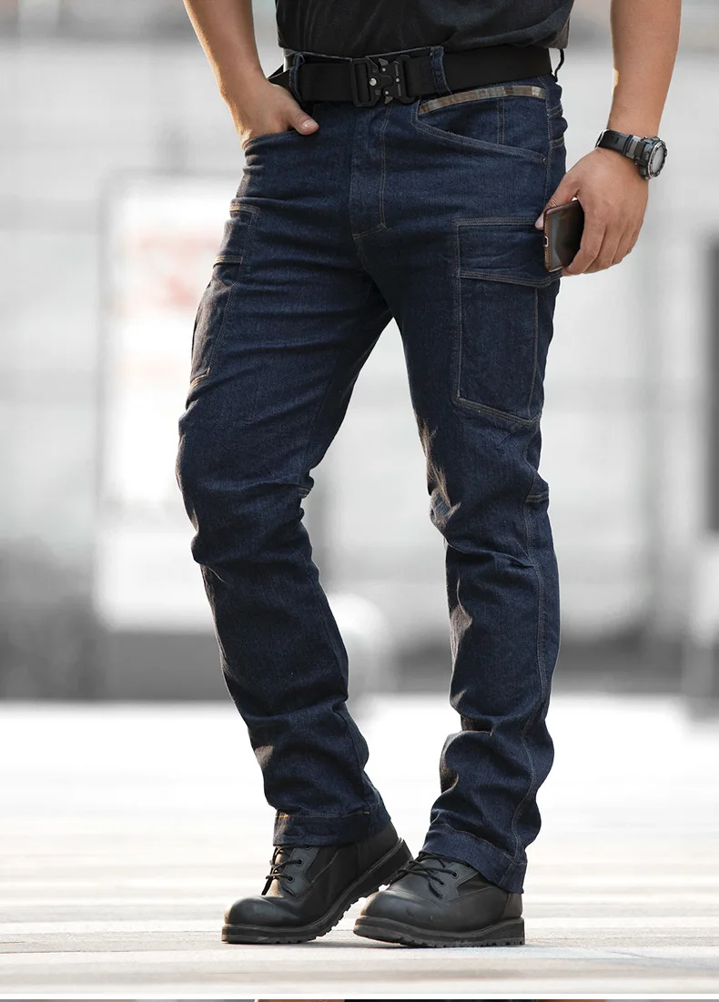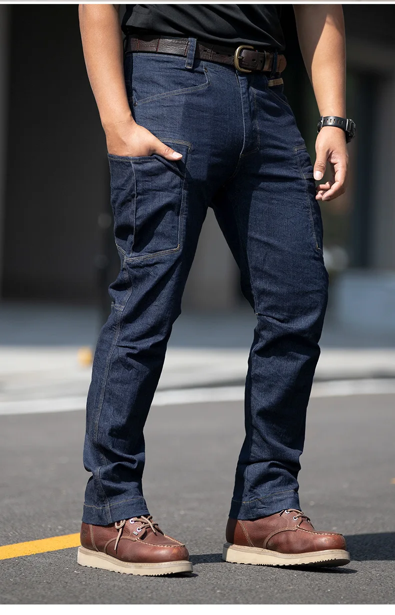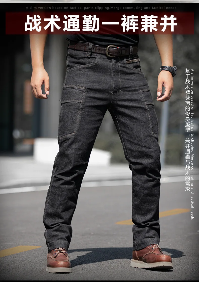 Pantalones de mezclilla tácticos para exteriores, pantalones elásticos resistentes al desgaste con múltiples bolsillos, monos, senderismo, entrenamiento militar, pantalones vaqueros de combate