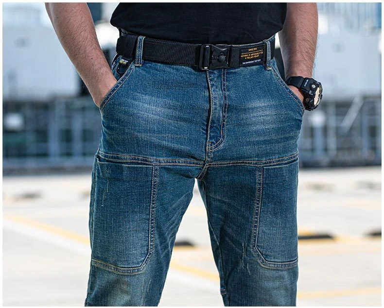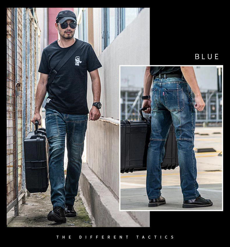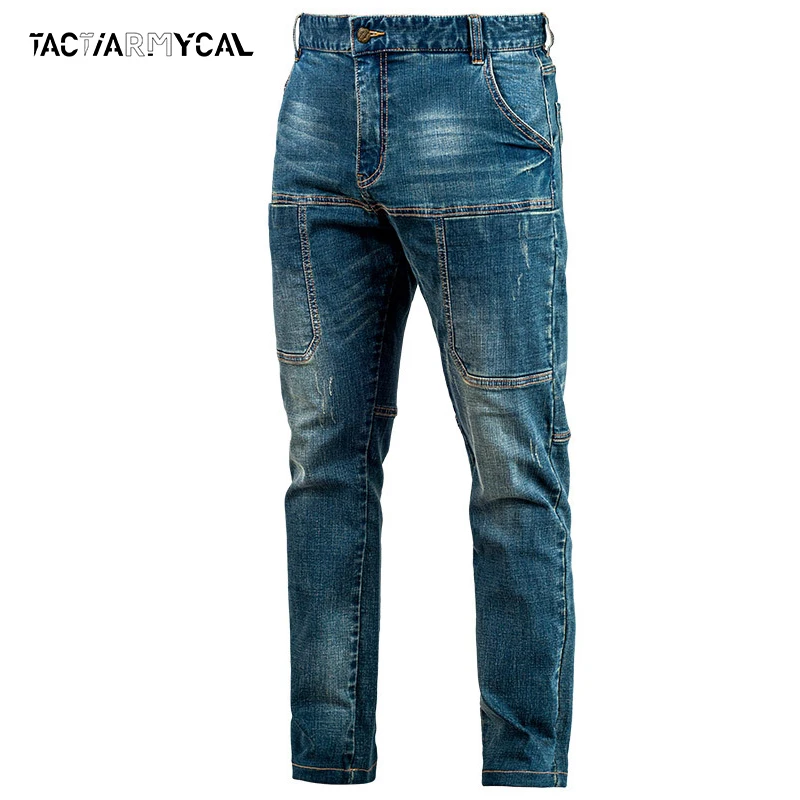 Pantalones vaqueros tácticos para hombre, Jeans rectos informales, tácticos militares, múltiples bolsillos, azul, Dimim, otoño