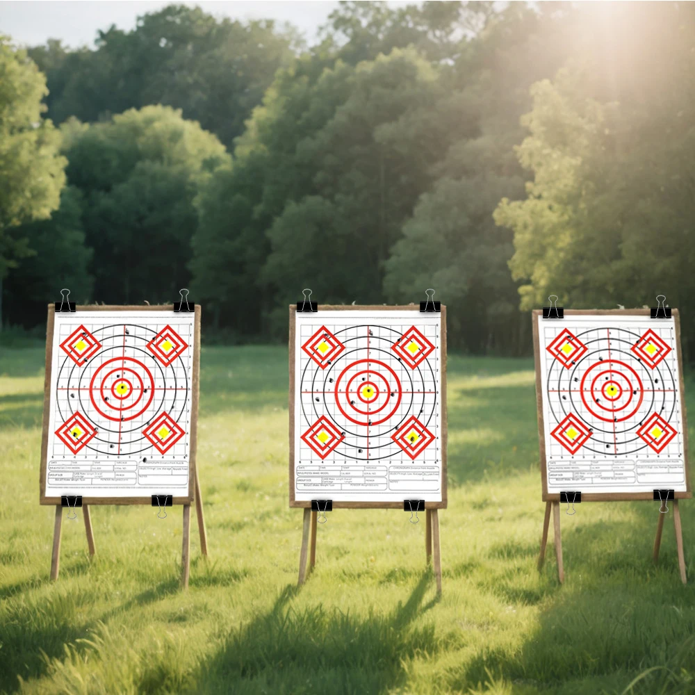 2.Rejillas de 1", Bullseye central y cuatro puntos de puntería de diamante para practicar y mejorar la precisión.