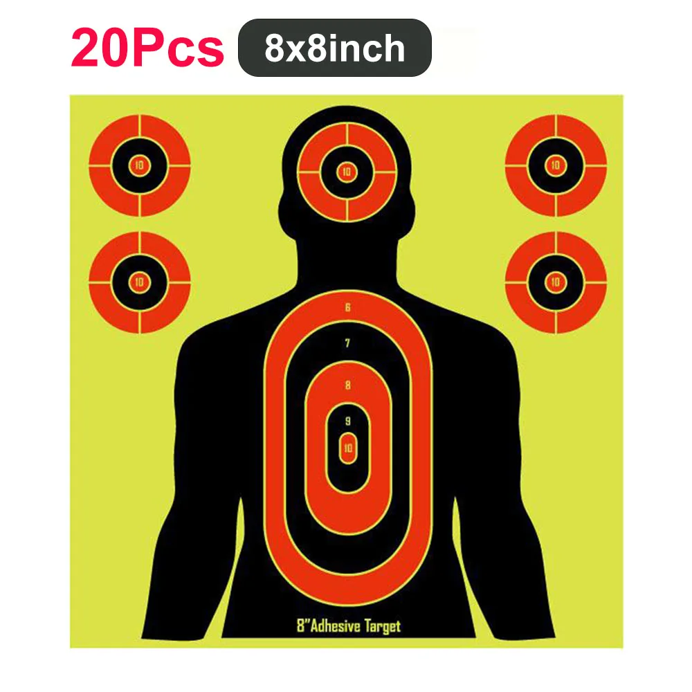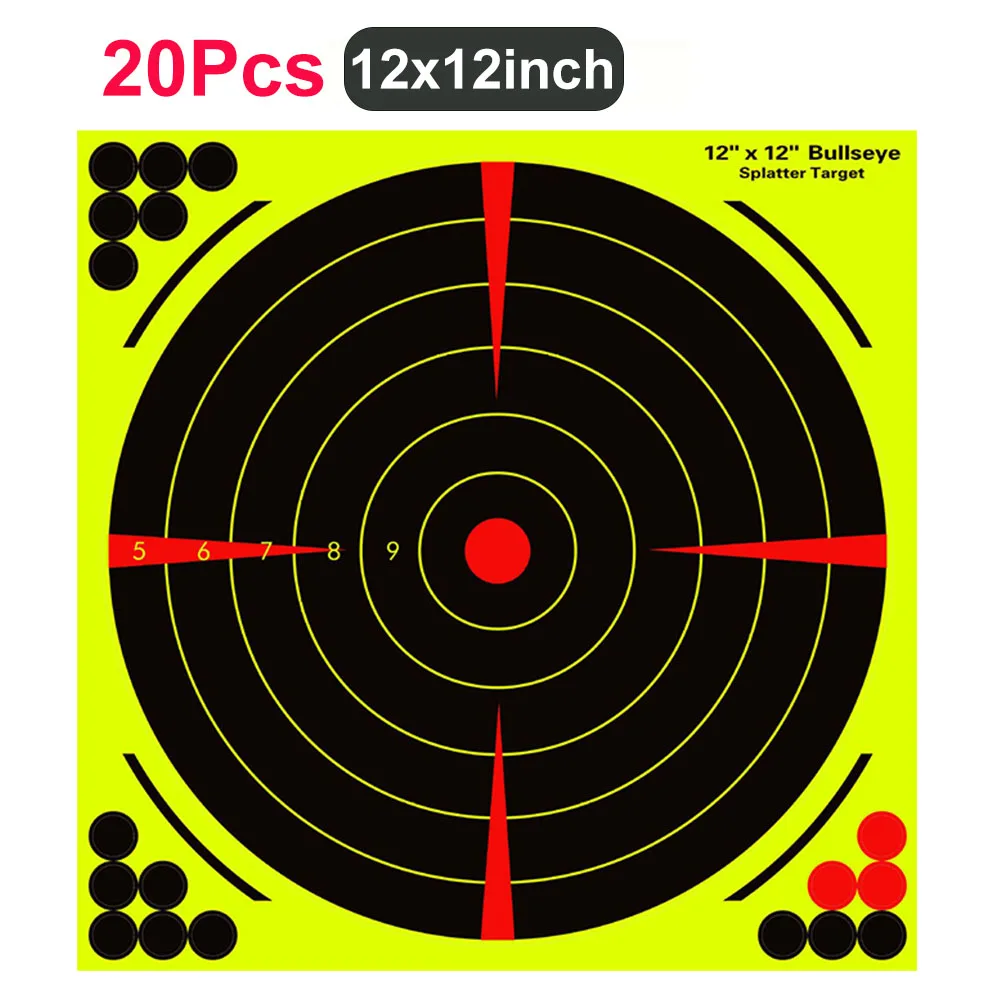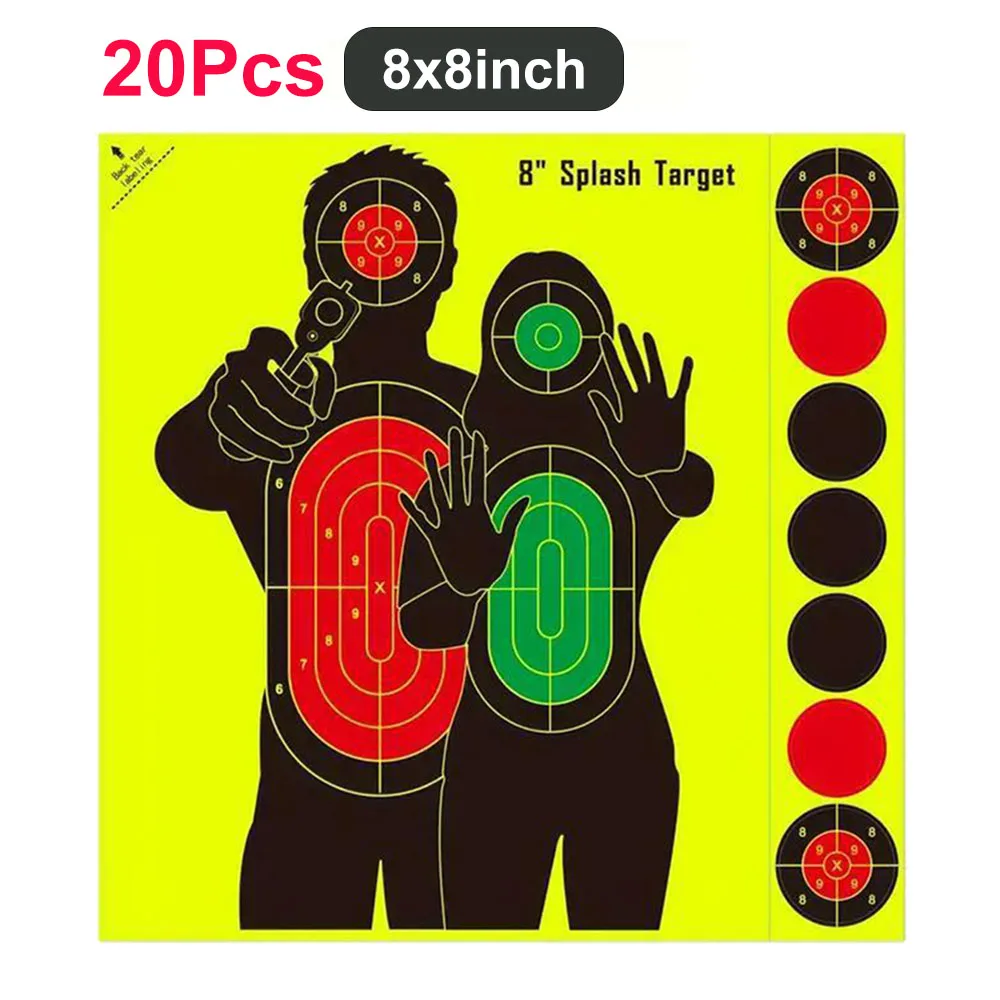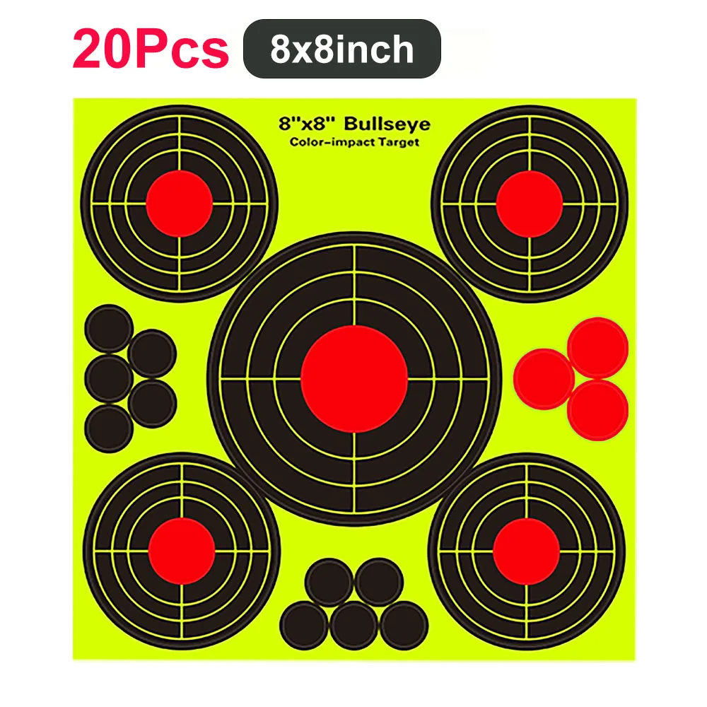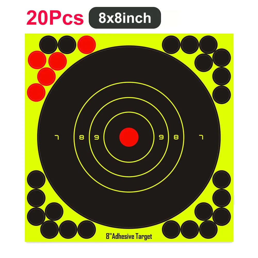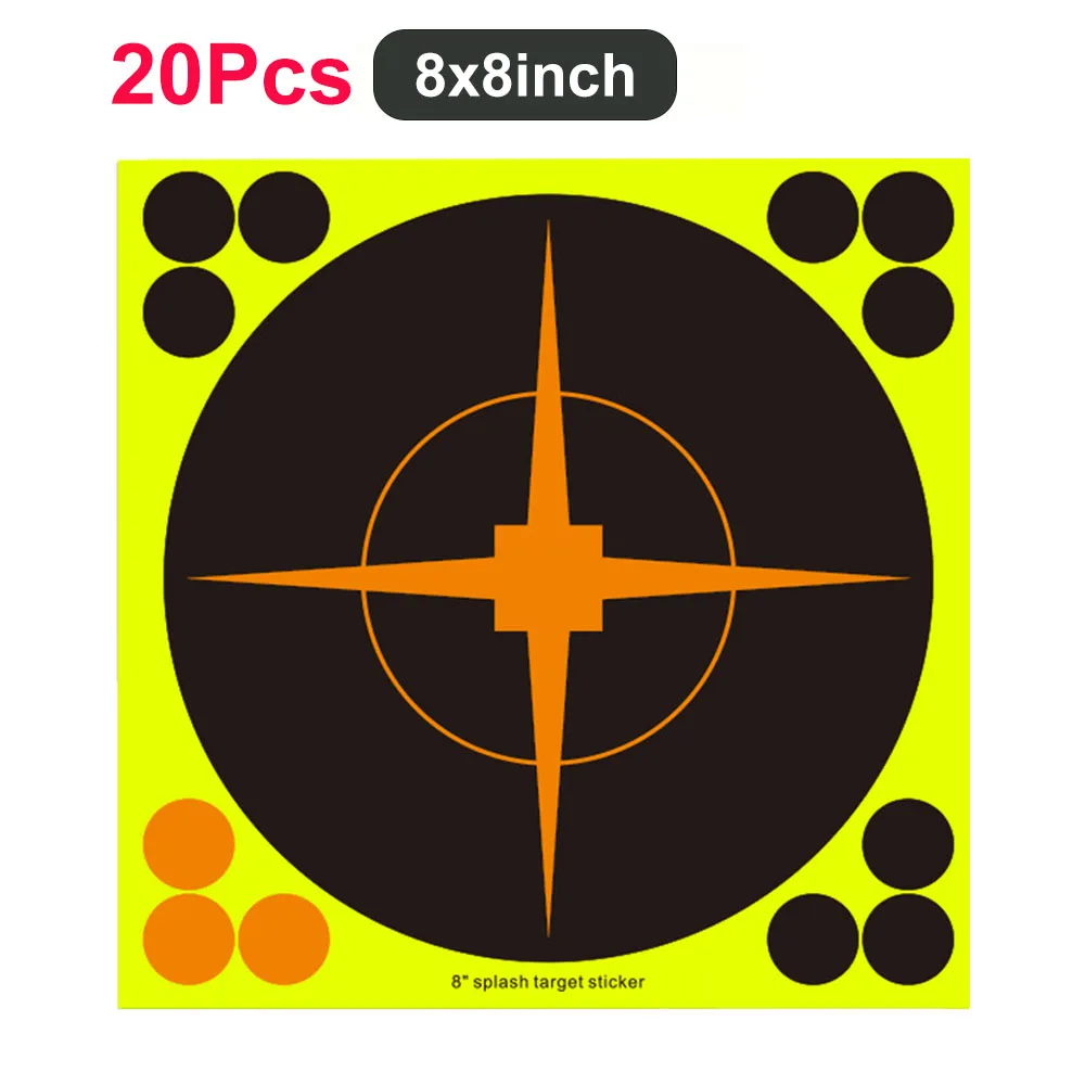 20 piezas papel objetivo de tiro pegatina de objetivo de salpicadura de 8/12 pulgadas objetivos autoadhesivos papel pegatinas de objetivo de tiro fluorescentes para práctica de tiro al aire libre