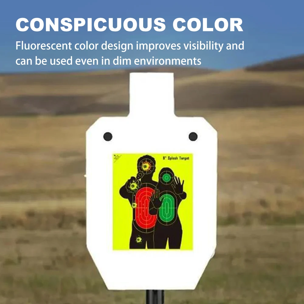 Nuestras pegatinas fluorescentes contra salpicaduras están diseñadas para una visibilidad excepcional.Cuando estés fotografiando, verá instantáneamente el brillante amarillo fluorescente explotó al impactar.Este diseño de alta visibilidad le permite concentrarse más en disparar, ahorrando tiempo al reducir la necesidad de inspeccionar objetivos.