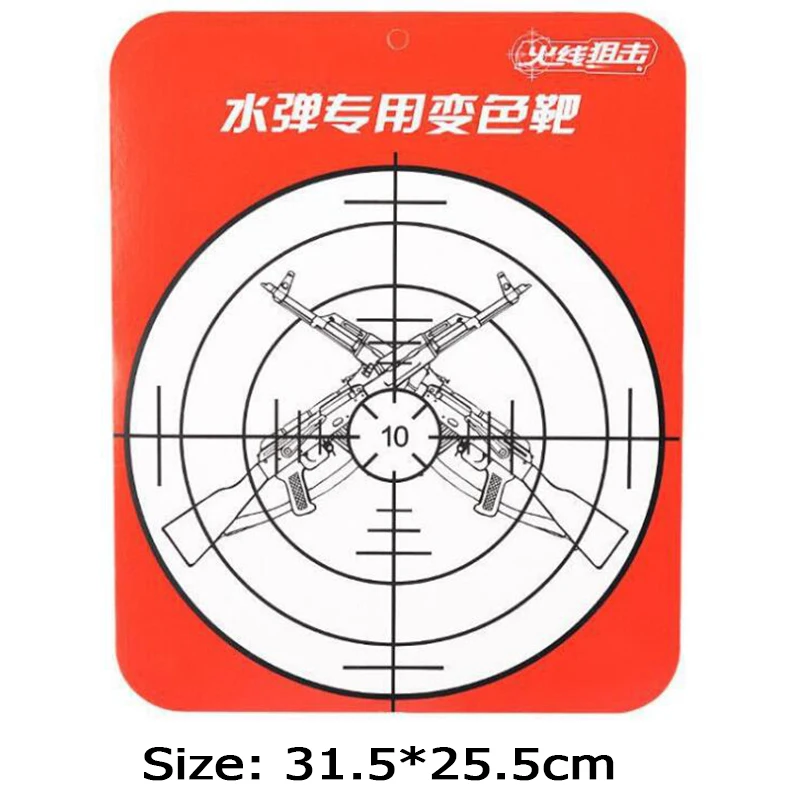 Adecuado para niños mayores de 6 años Cuando el objetivo alcance el agua, cambiará de color. Cuando el agua esté seca, el color desaparecerá. Es reutilizable. Gran accesorio para pistola de juguete de balas blandas. Súper seguro y divertido, es un gran regalo. El tablero se puede colgar en cualquier pared o puerta. Especificaciones: Color: como se muestra Material: papel cartón Paquete incluido: 5 piezas x objetivos de papel Notas: Debido a la diferencia entre los diferentes monitores, es posible que las imágenes no reflejen el color real del artículo.