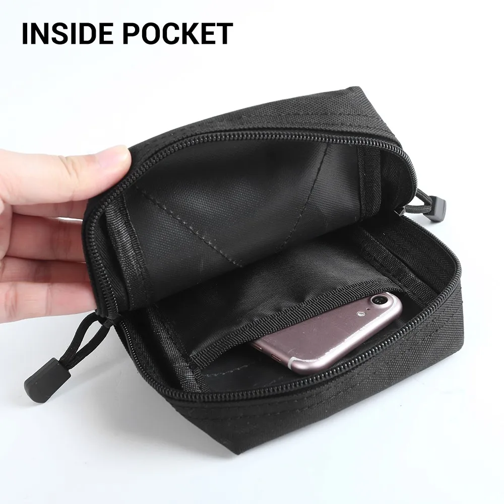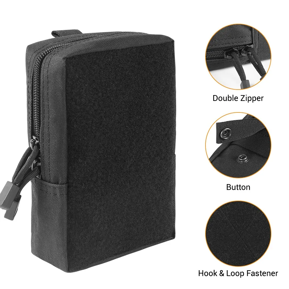 2.【Cierre de gancho y bucle】La pequeña bolsa de herramientas utiliza la plataforma Molle de material de gancho y bucle para almacenar herramientas adicionales, montar parches memorables, agregar personalización/identificación táctica y colocar equipo MOLLE adicional.