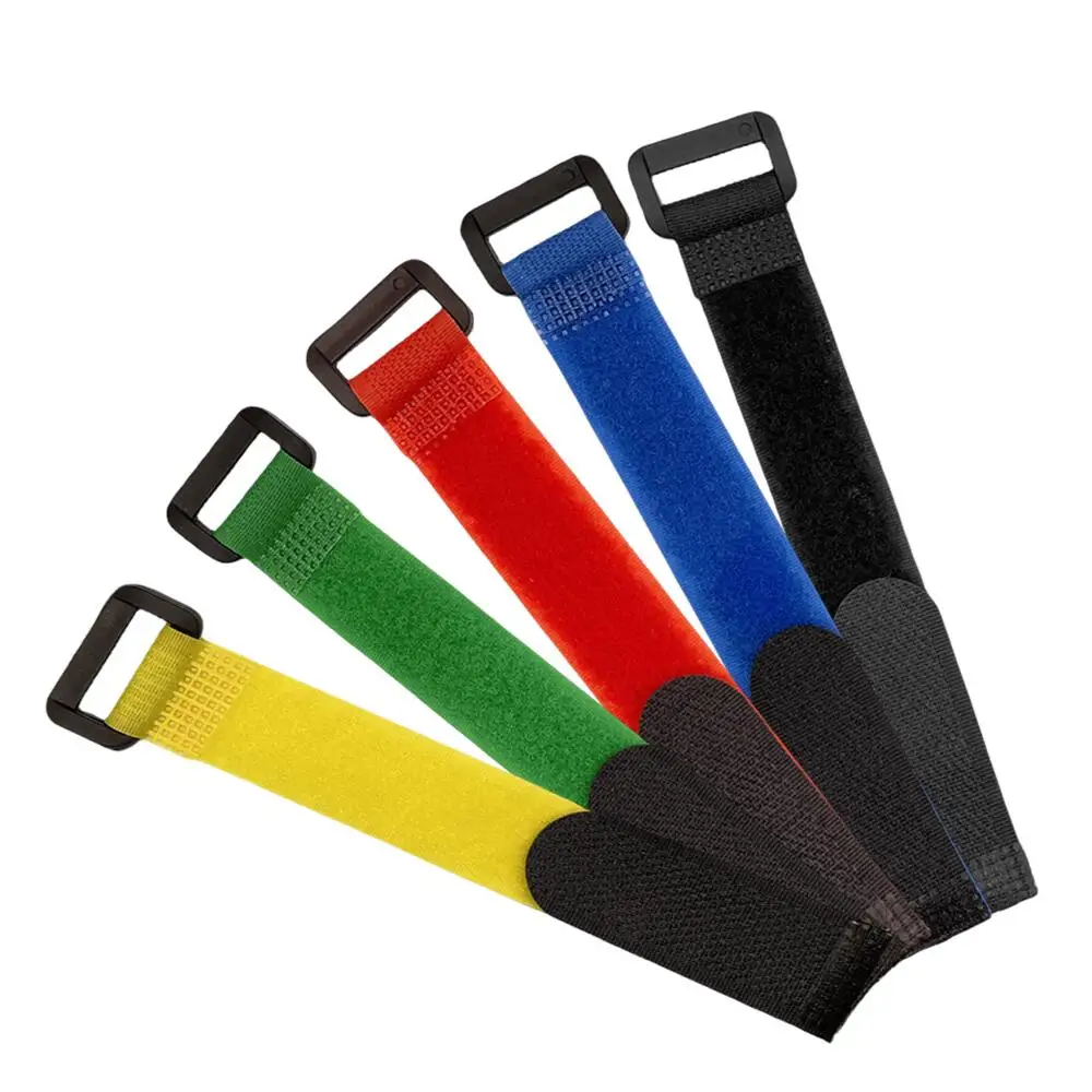 Paquete de 5 unidades de palos de cinta mágica, bridas para cables, modelo de correas de alambre con hebilla de palo de batería, paquete de cinturón, cinta de sujeción de gancho y bucle