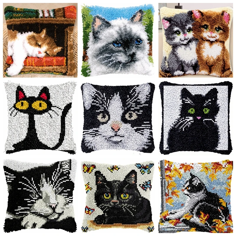 Paquete de almohada con nudo, Kit de gancho de pestillo, funda de almohada de cojín, conjunto de kussen para costura, Kit de gancho de pestillo de la serie Animal gato de dibujos animados DIY