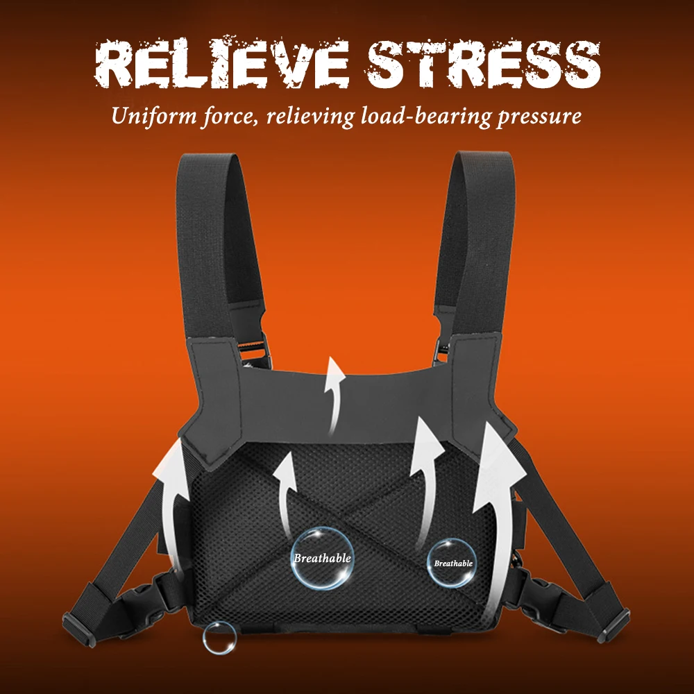 El equipo de pecho ha adaptado a algunos sistemas molle en las correas de los hombros y el lazo de la fachada para agregar engranajes molle como bolígrafo táctico, mini linterna u otras herramientas EDC.