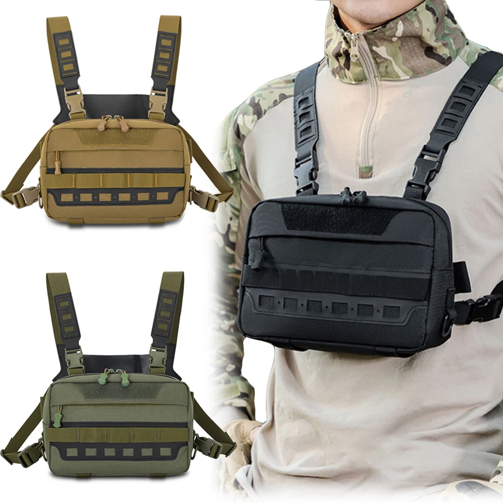 Paquete de aparejo táctico para el pecho, bolsa de pecho para correr con bucle frontal, aparejos de pecho Airsoft para caza, paquete de combate EDC al aire libre