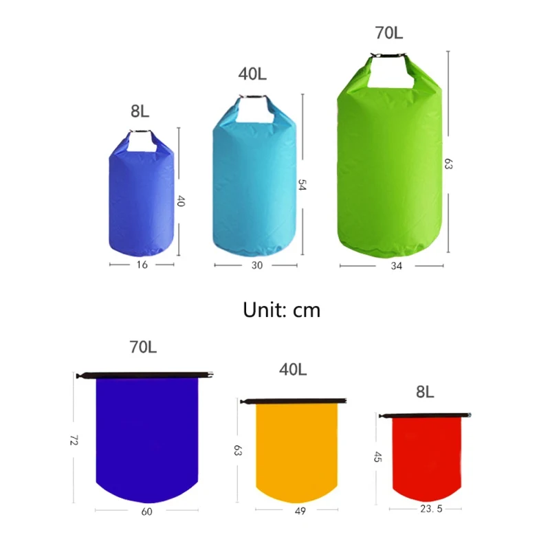 5: tres bolsas secas impermeables ligeras, adecuadas para mochileros, kayak o viajes de aventura, incluyendo 8L 40L 70L
