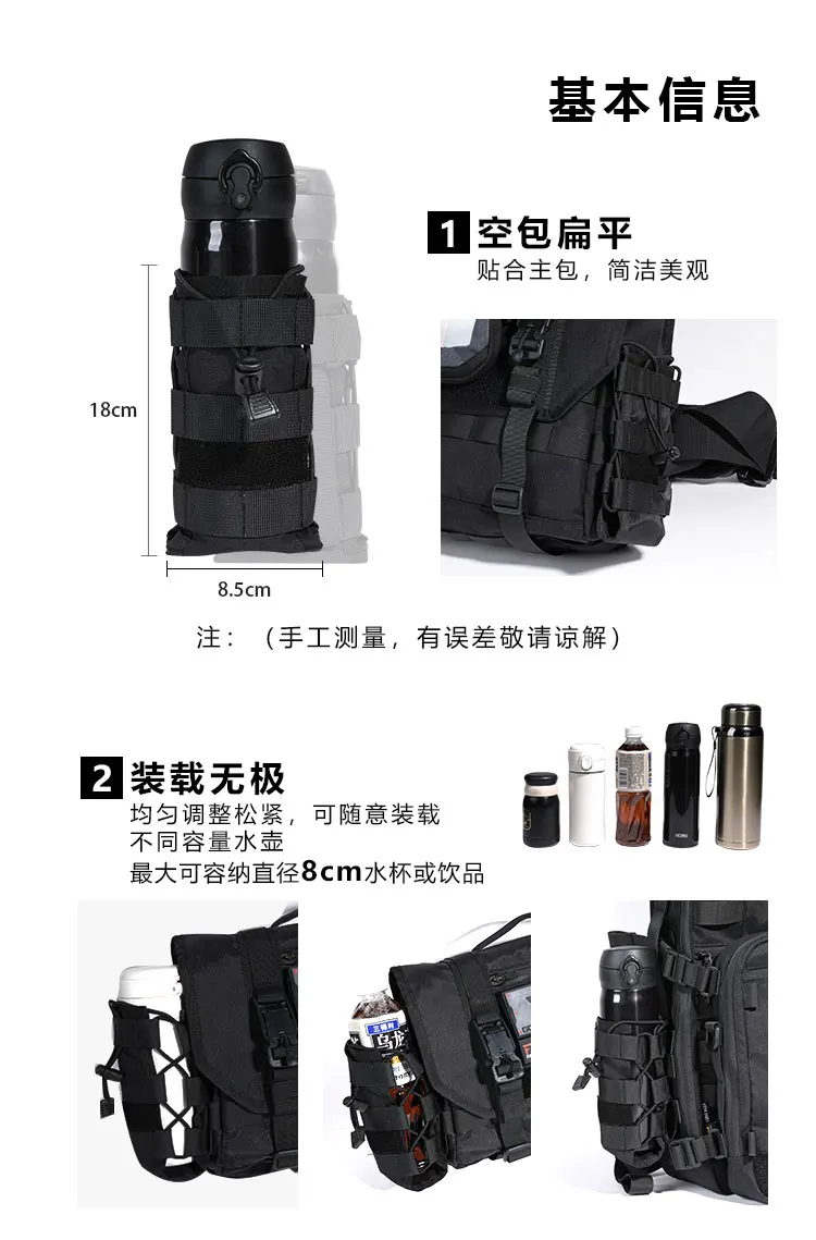 Paquete de botella de agua táctica Molle, cubierta sub extendida para hervidor de agua al aire libre
