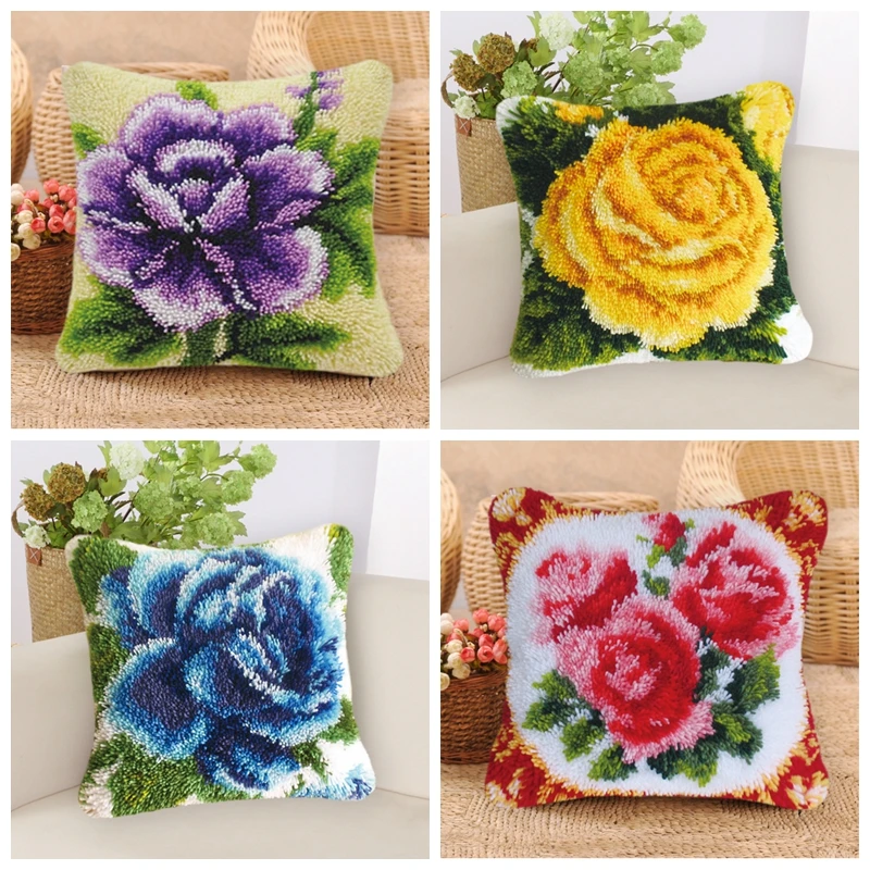 Paquete de botones de almohada con pestillo bordado de flores Kits de gancho de pestillo Paquete de botón Smirna para Kit de gancho de pestillo Smyrna impreso