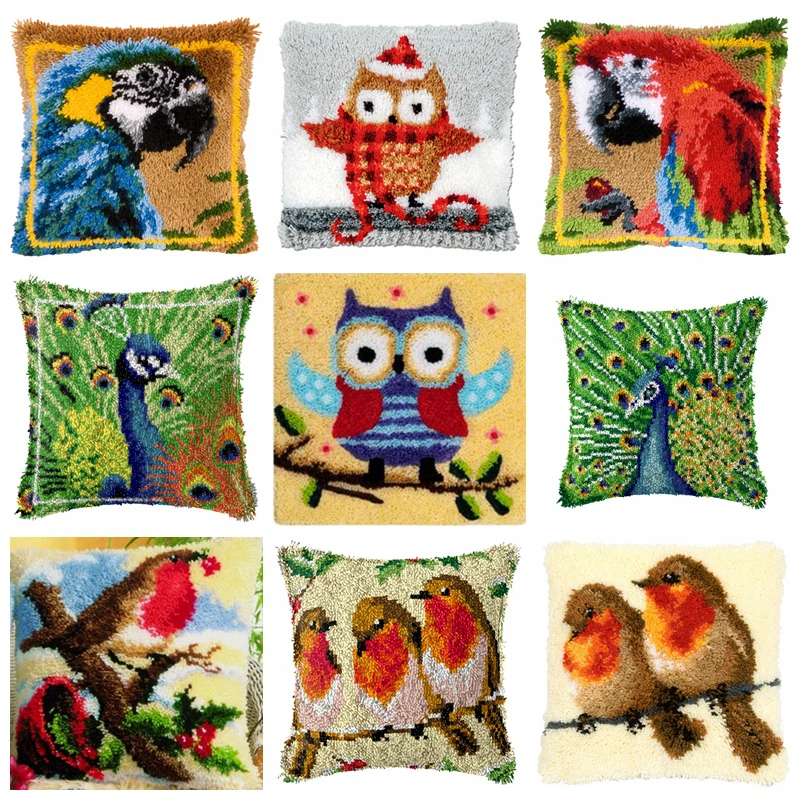 Paquete de botones de Smyrna de animales, alfombra de malla de plástico para hacer bolsas, Kits de gancho de pestillo para pájaros, Kit de bordado de alfombras, almohada de punto de cruz