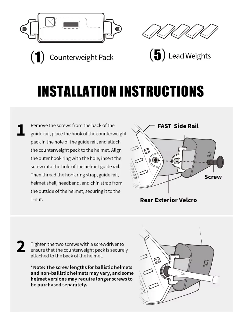 Paquete de contrapeso para casco táctico con 5 pesos de plomo