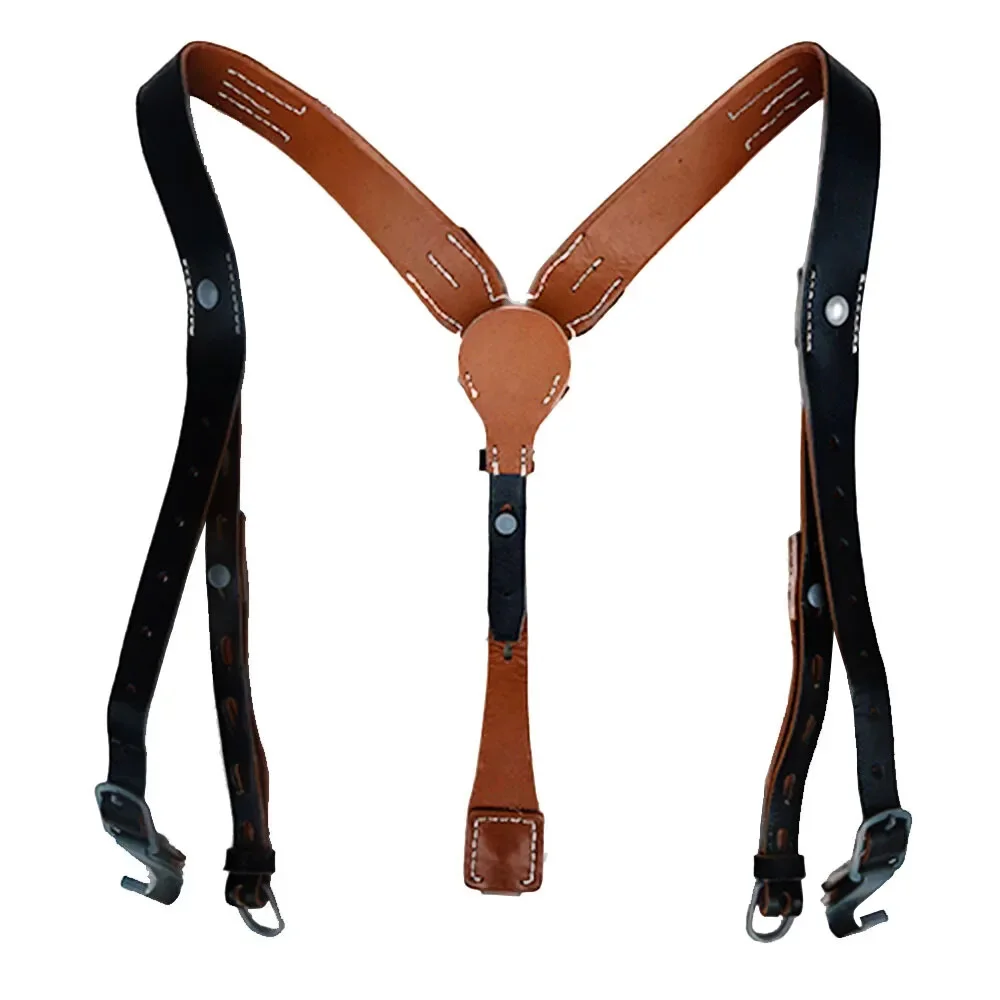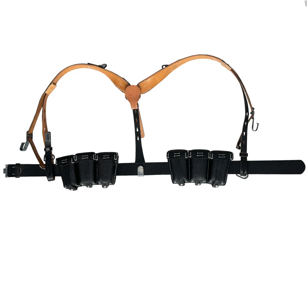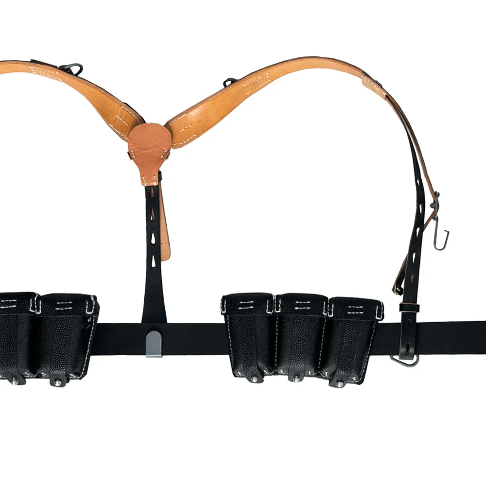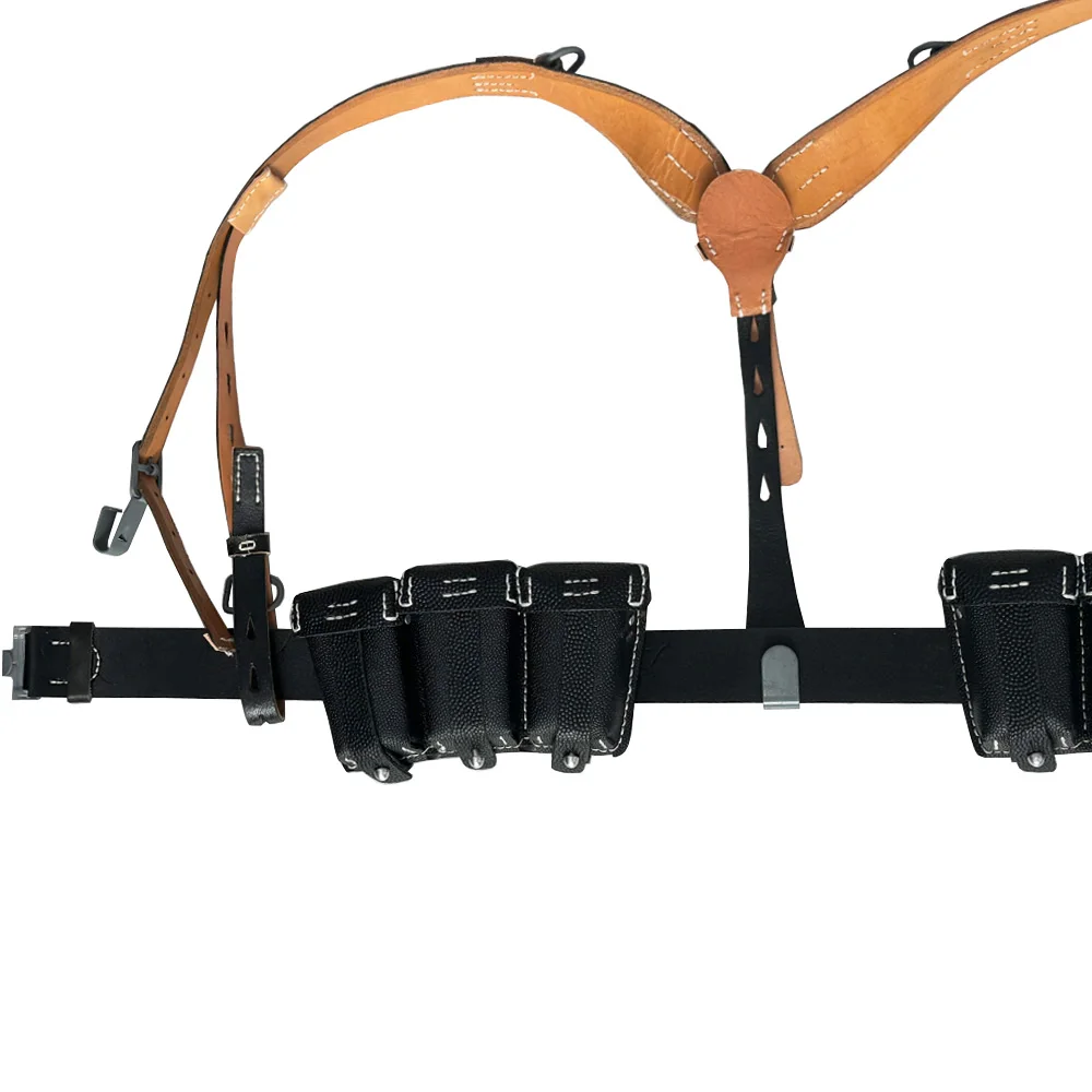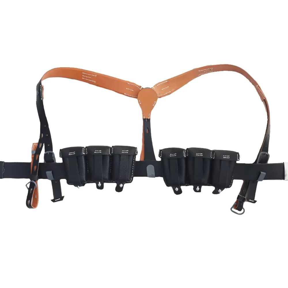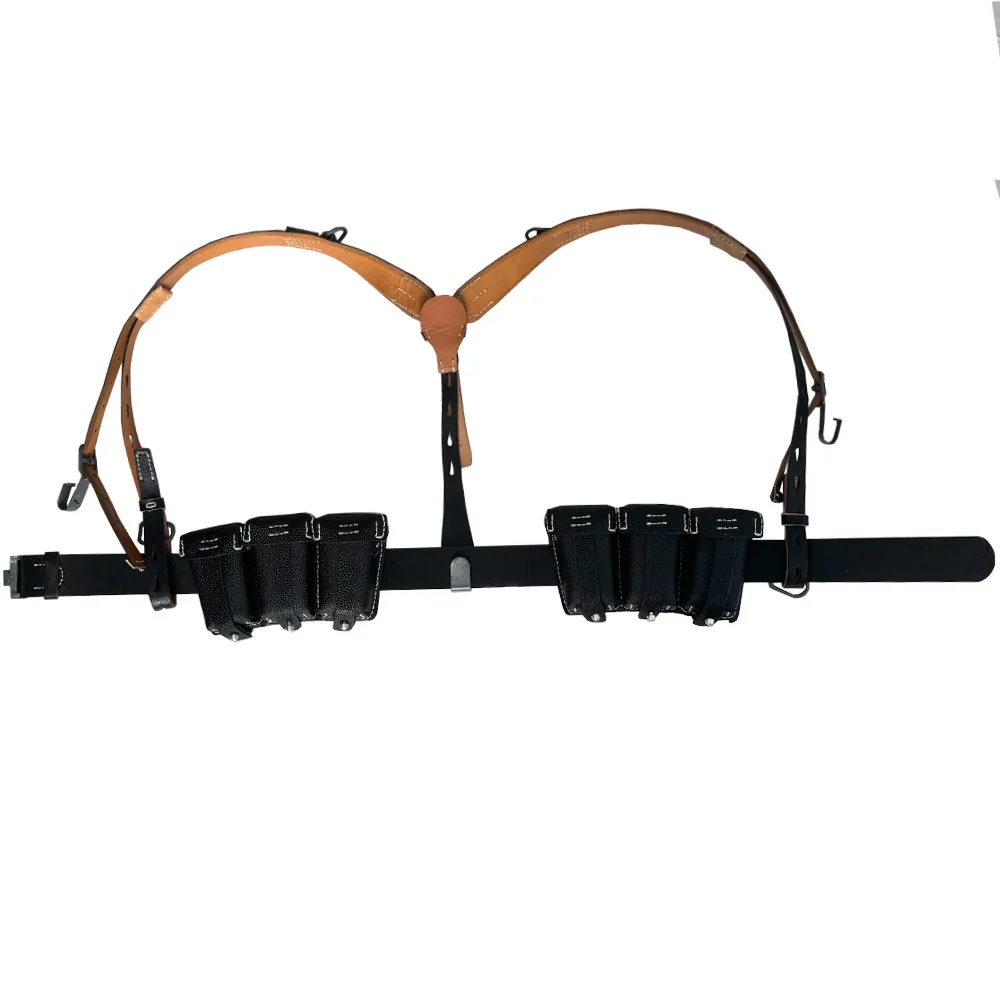 Esta combinación de equipos fue un kit de equipos de soldados alemanes de la Segunda Guerra Mundial, con un cinturón para equipos de soldados alemanes, una correa en forma de Y y dos kits de equipos negros. El material de toda la combinación del equipo es piel de vaca, los sujetadores son sujetadores de metal, el material general es muy resistente y duradero.