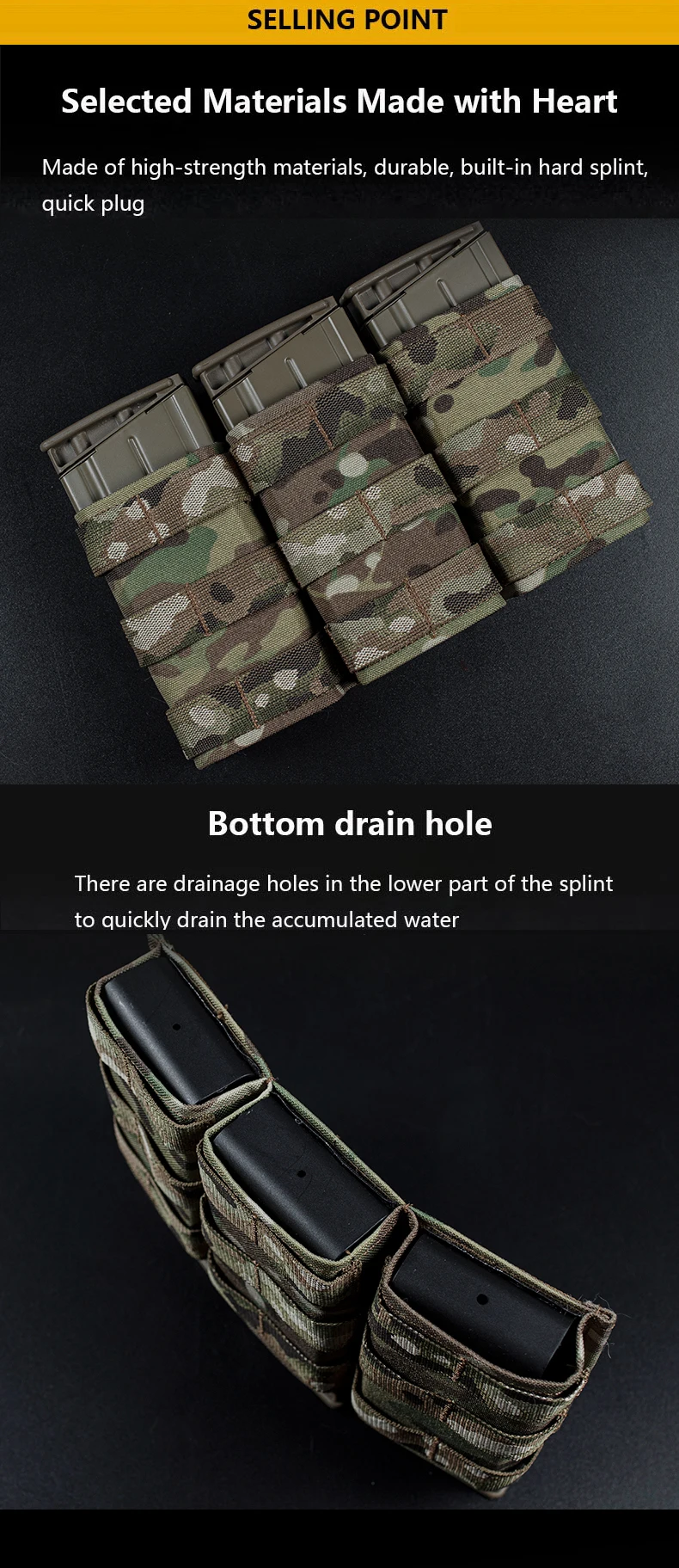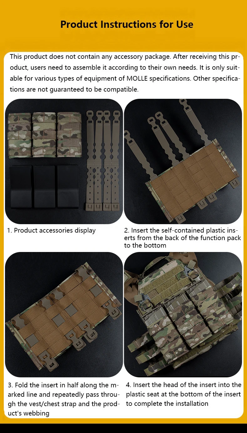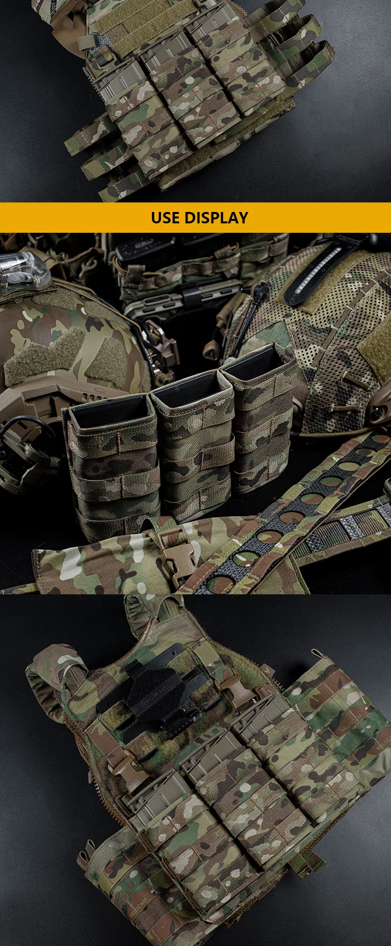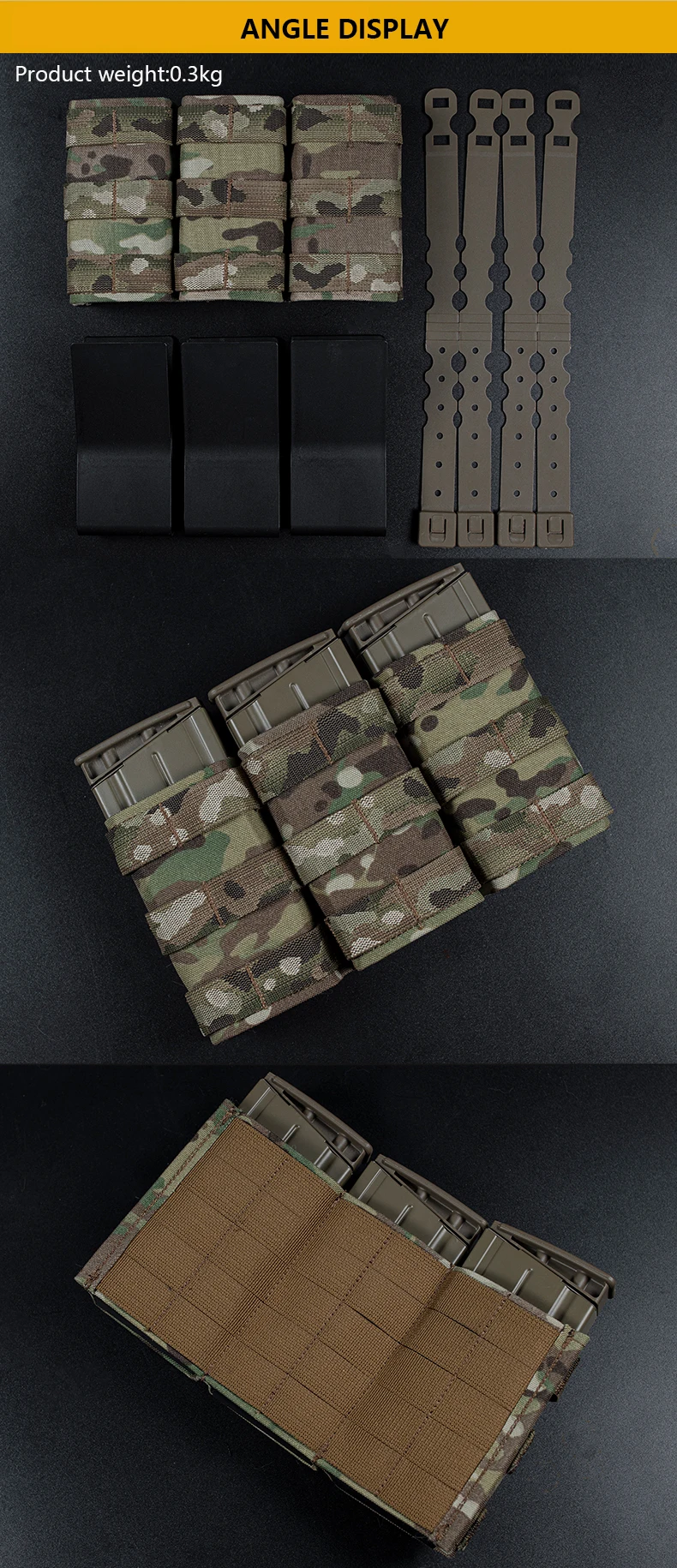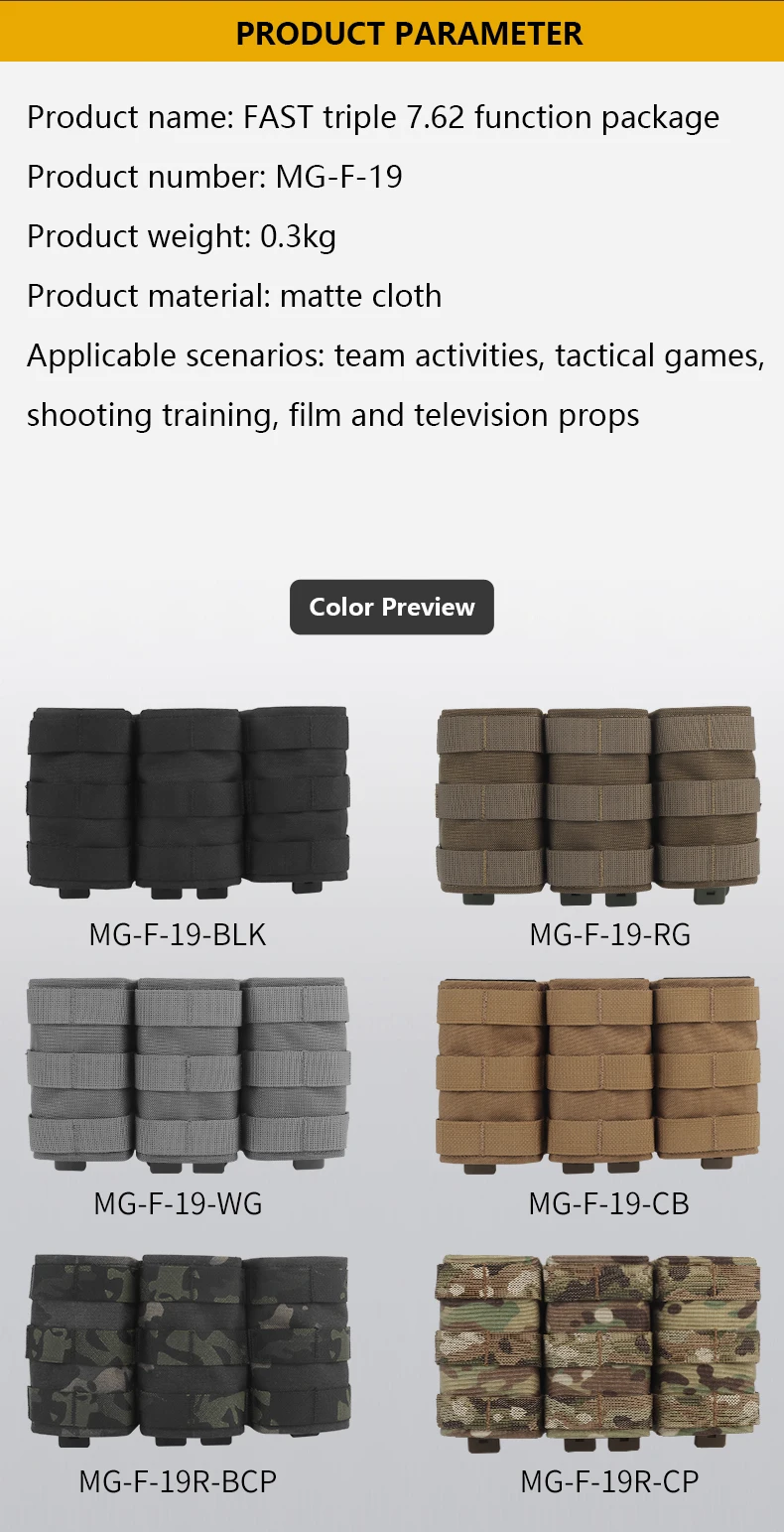Paquete de funciones de revista de equipo táctico MOLLE, expansión de accesorios MOLLE, triple rápido, 7,62, bolsa de función AK, tamaño alto