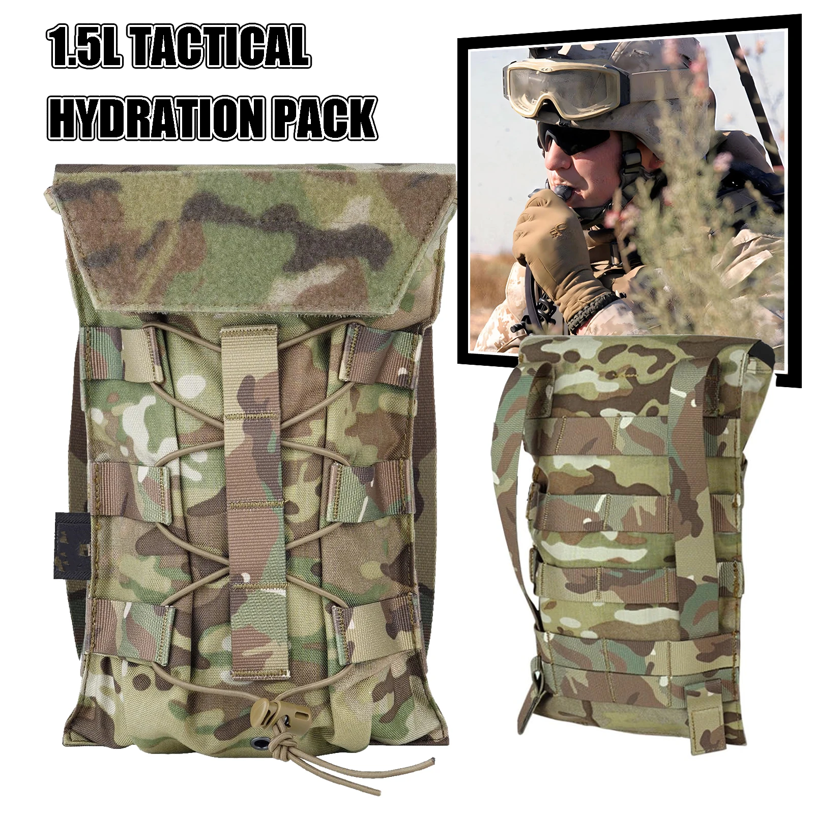Paquete de hidratación táctica de 1,5 l, bolsa portadora Molle para vejiga de hidratación de 50 oz, mochila de agua para senderismo, correr y escalar