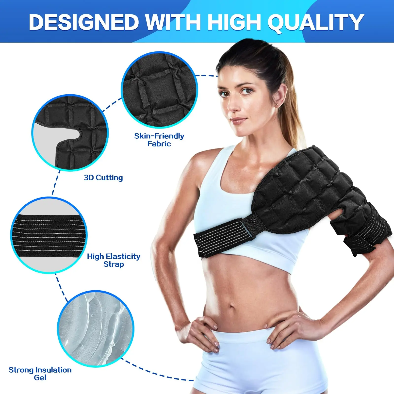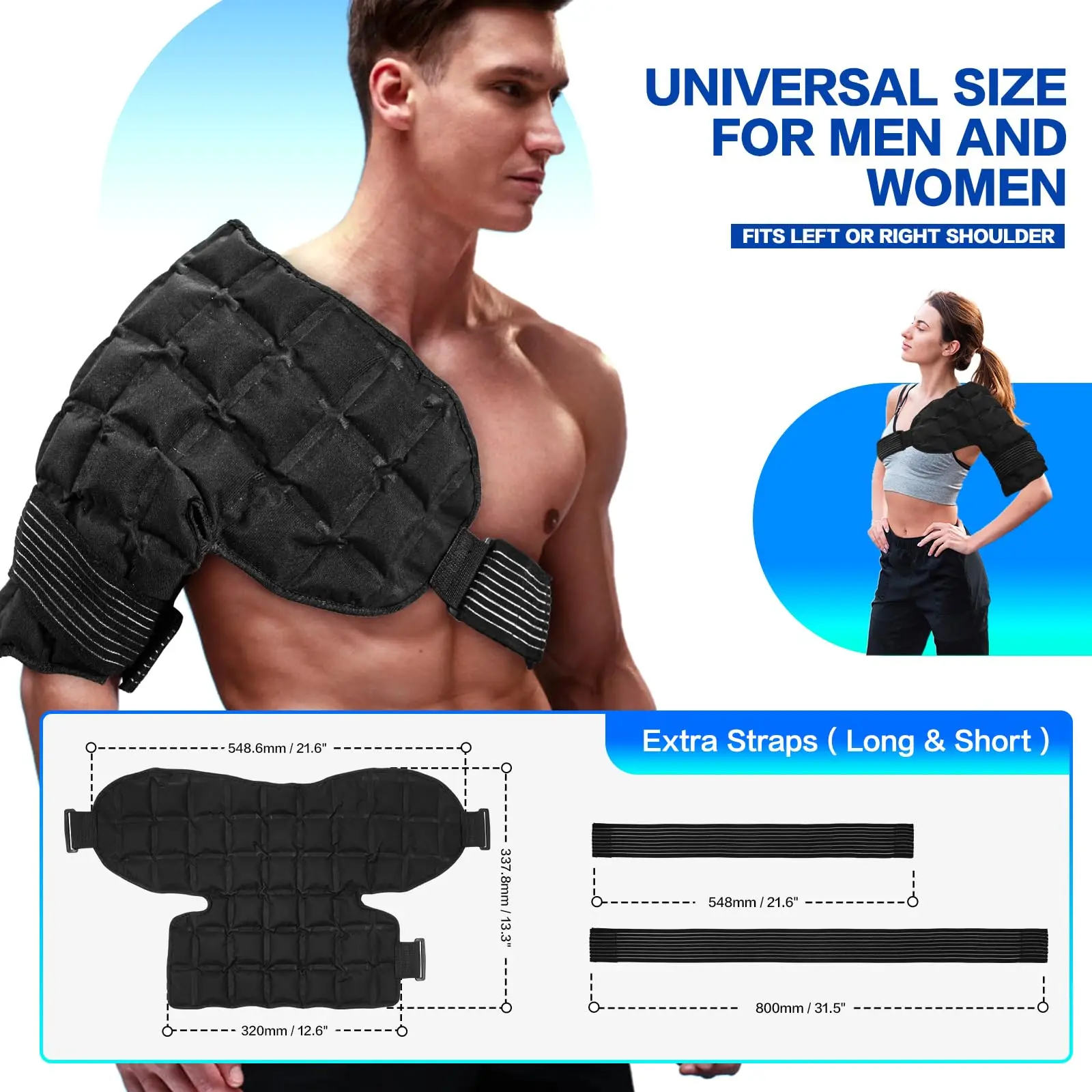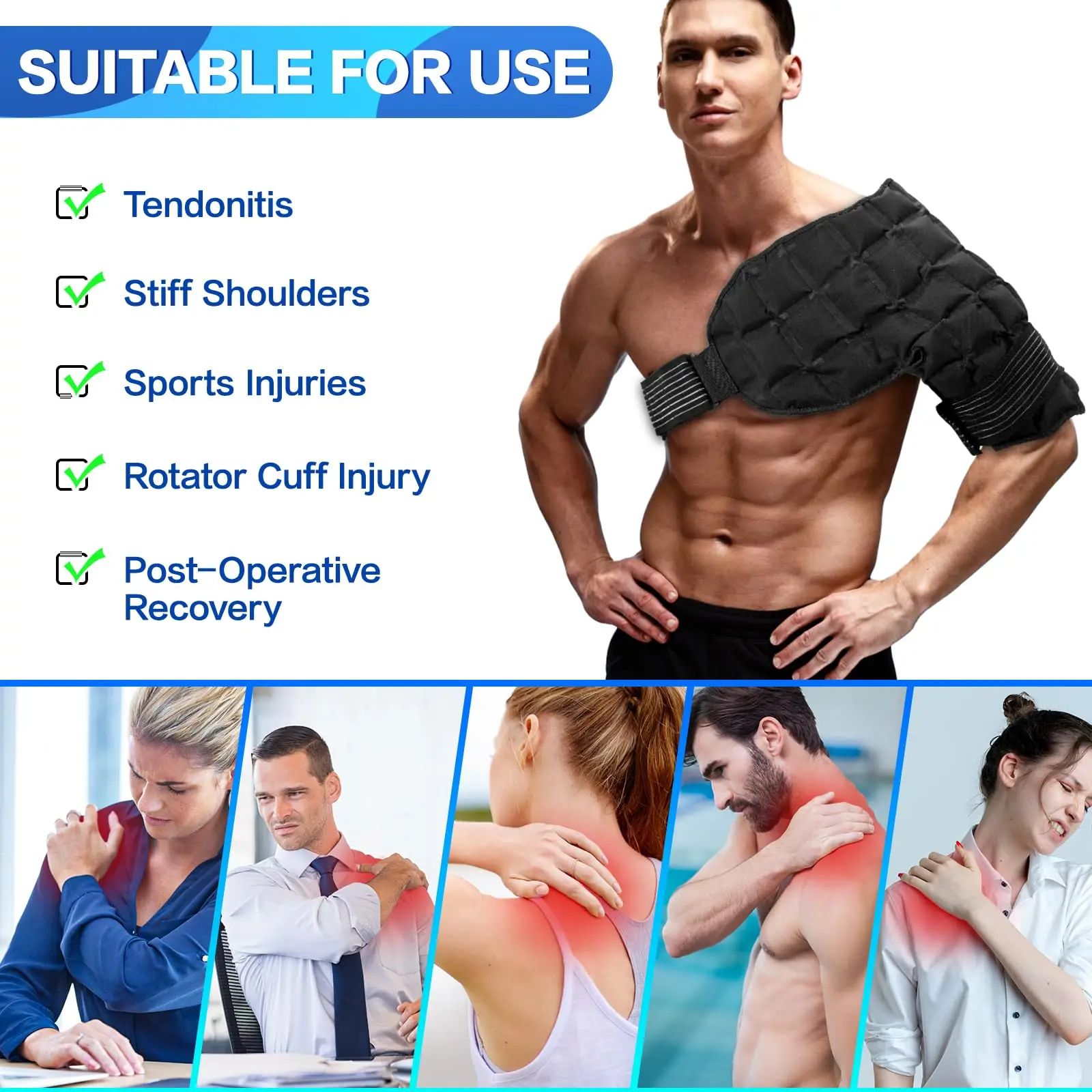 【PAQUETE DE HIELO REUTILIZABLE Y MULTIUSOS】- La bolsa de hielo de hombro reutilizable está diseñada para uso repetido, manteniendo su suavidad ya sea congelada o caliente.Esta versátil bolsa de hielo brinda alivio del dolor de hombro con manos libres, lo que la hace perfecta para usar mientras está sentado, de pie o acostado.Ya sea que necesite alivio para el hombro izquierdo o derecho, la parte superior de la espalda, la parte inferior de la espalda, las piernas o las rodillas, el diseño ergonómico garantiza comodidad y eficacia en múltiples áreas del cuerpo.