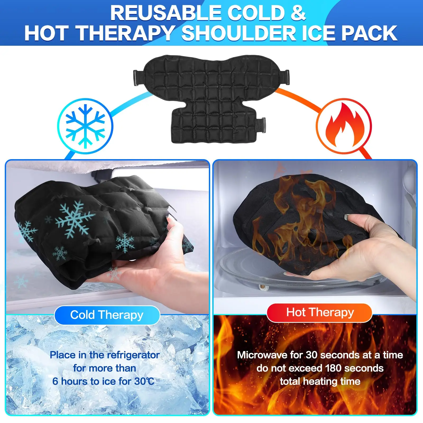 【TÉRAPIA DOBLE PARA UN ALIVIO MÁXIMO】- Experimente lo mejor de ambos mundos con Shoulder Ice Pack, que ofrece una terapia versátil de frío y calor.Para aliviar el dolor, simplemente congele el paquete durante 2 o 3 horas antes de usarlo.¿Necesita relajar los músculos rígidos o aliviar los hematomas?Calienta la bolsa de hielo en el microondas durante 2-3 minutos para una terapia de calor eficaz.Ya sea que se trate de inflamación o fatiga muscular, lo tiene cubierto.Se incluyen instrucciones detalladas para un uso óptimo.