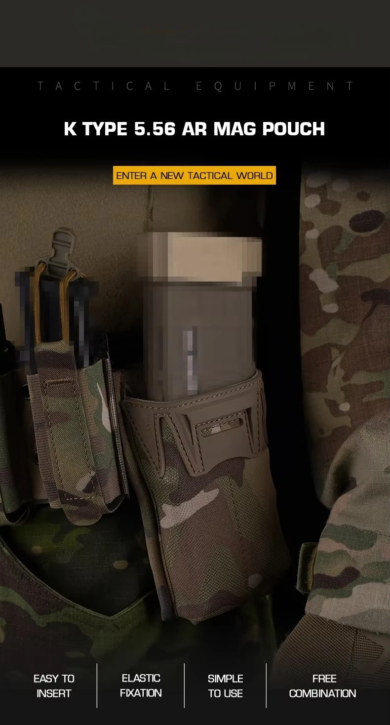 MOLLE Mount K tipo 5.56, bolsa Mag multietapa ajustable en altura, accesorios de caza