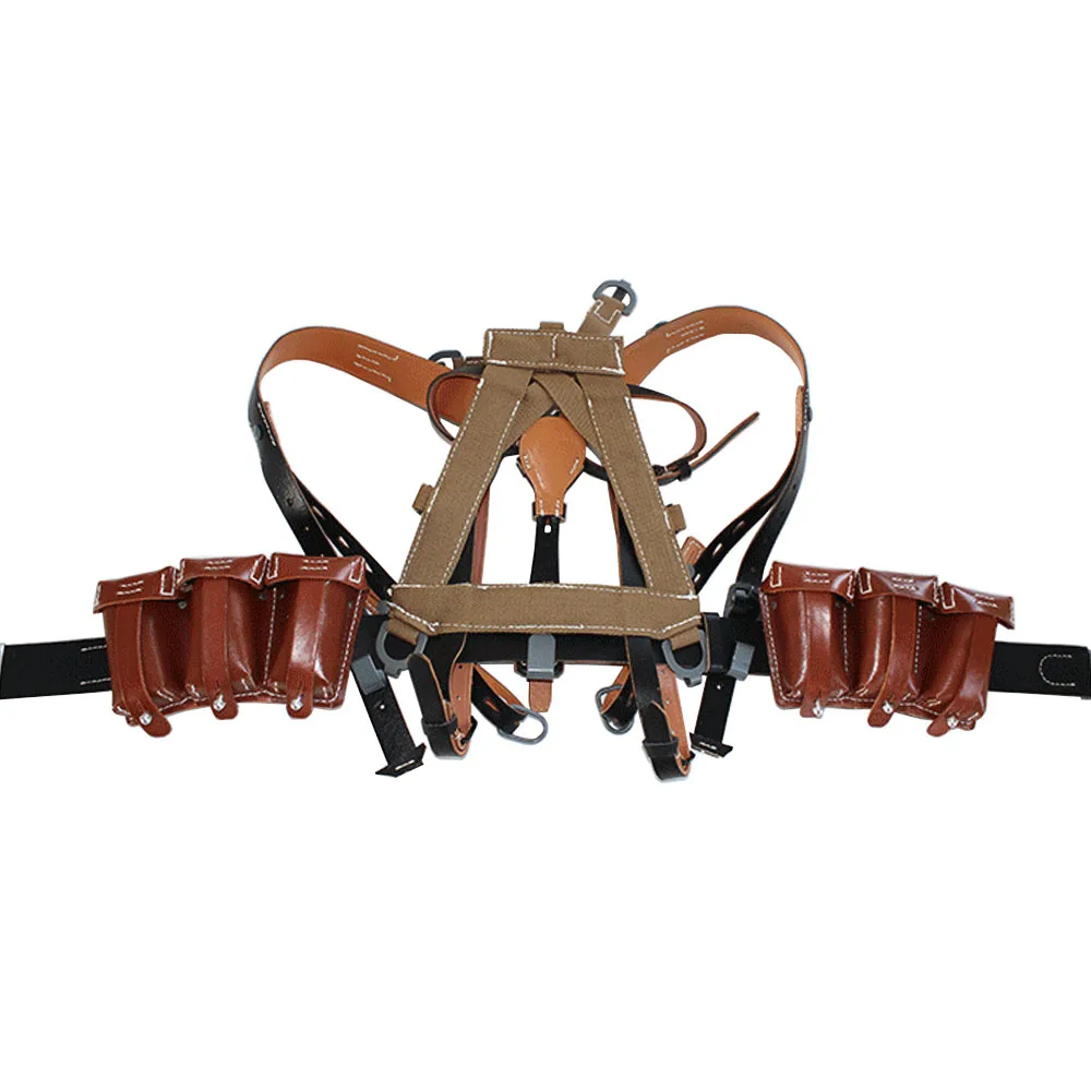 Este soldado alemán de la Segunda Guerra Mundial Una combinación de cinturones es un accesorio cuidadosamente restaurado basado en datos históricos que recrea el diseño clásico del equipo personal alemán durante la Segunda Guerra Mundial.Los soldados utilizaron el cinturón A para llevar herramientas importantes, y su practicidad y durabilidad se han convertido en el centro de atención de los coleccionistas.
