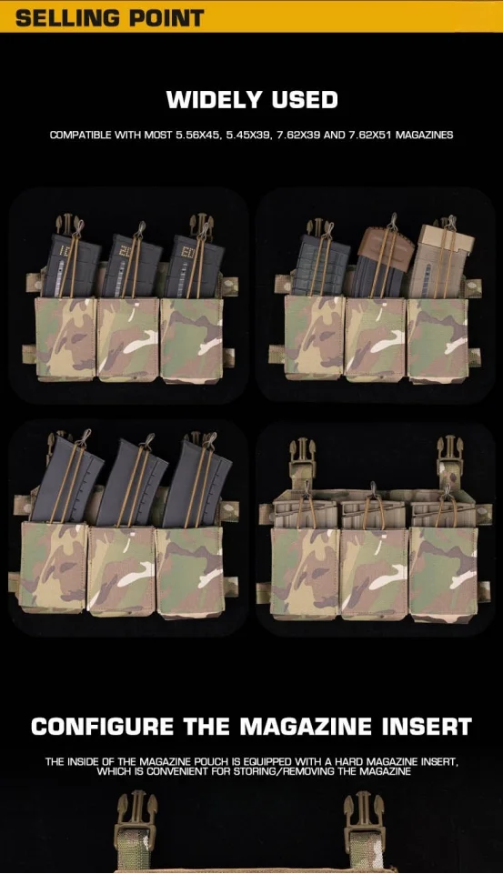 Paquete multiusos de triple función, compatible con varios chalecos de caza 5.56/7.62 paquete de accesorios