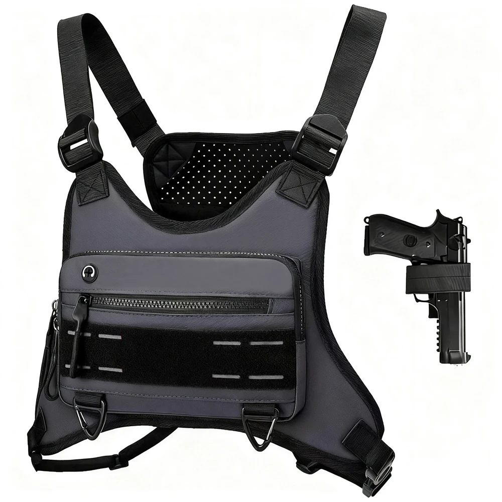 Paquete de pecho deportivo con funda para pistola, bolsa de transporte oculta para pistola, bolsa de pecho, chaleco para correr, paquete de pecho, bolsa para aparejo de pecho de viaje EDC