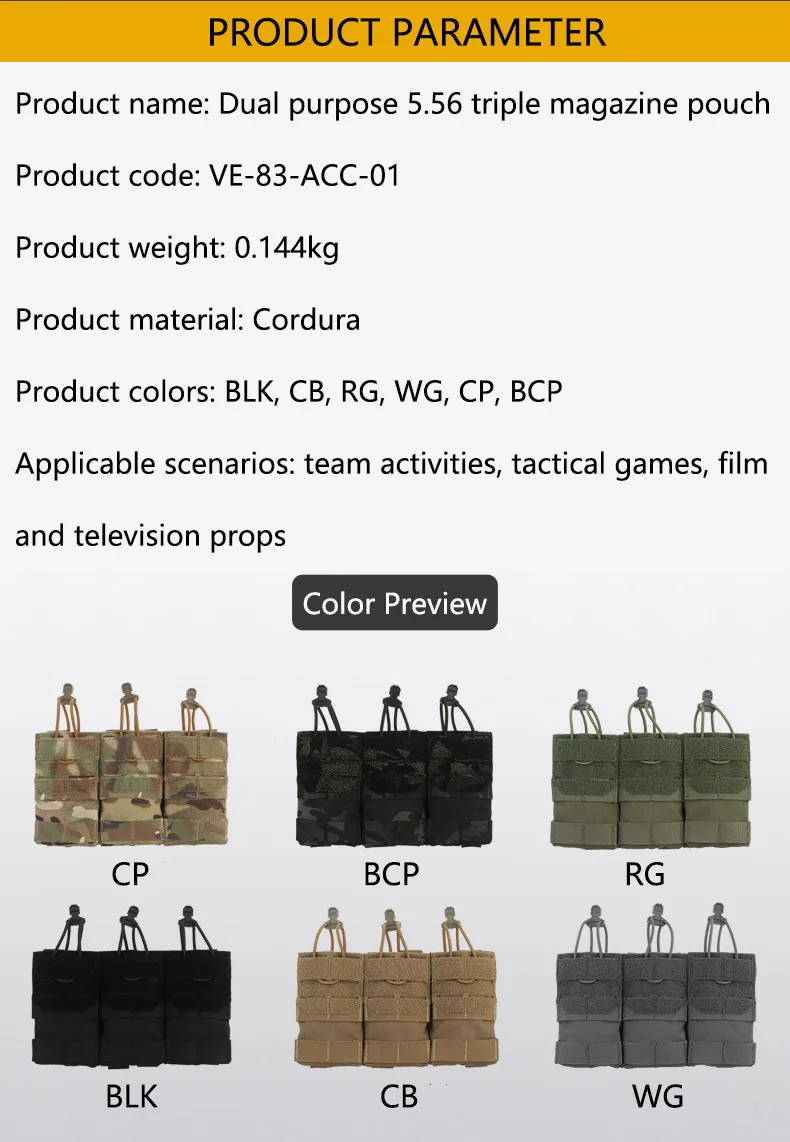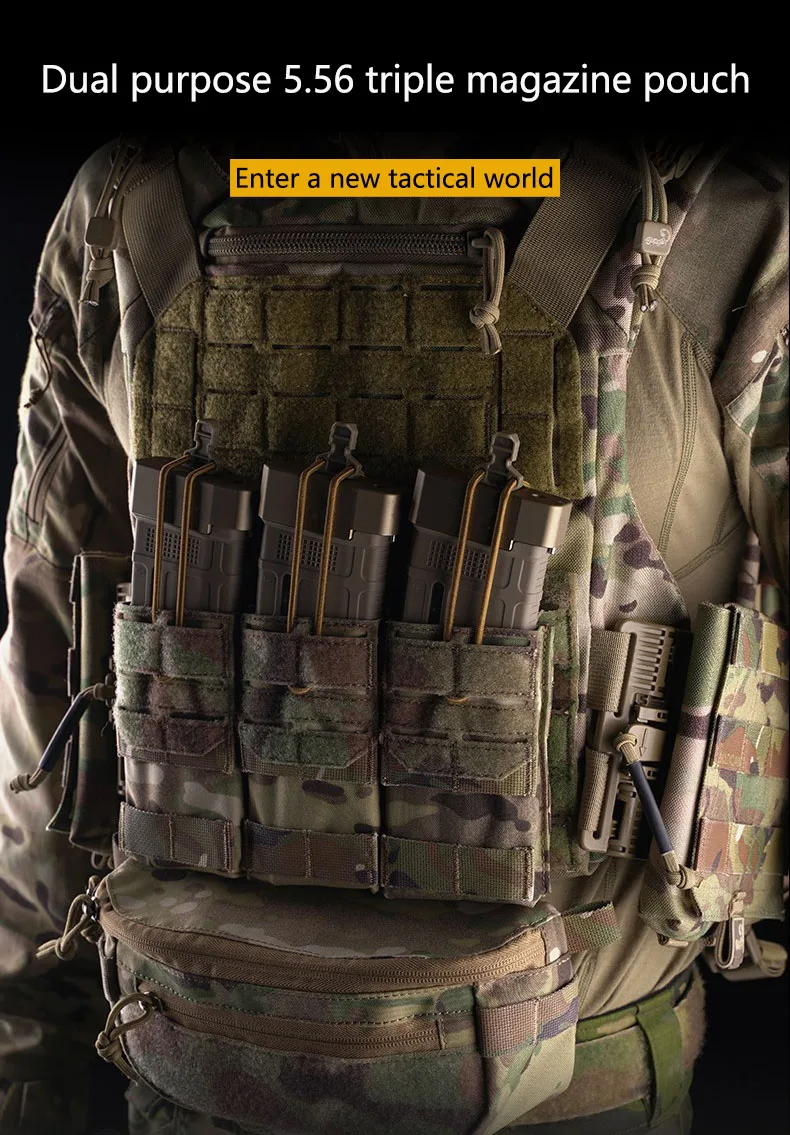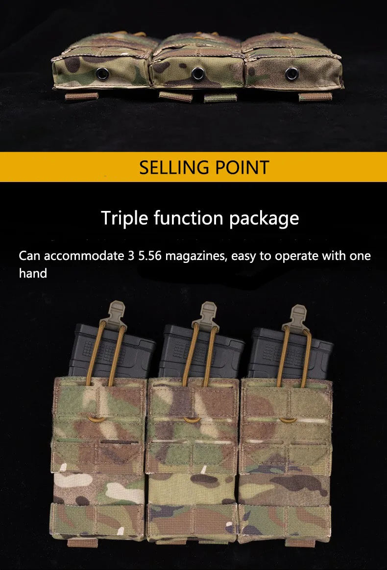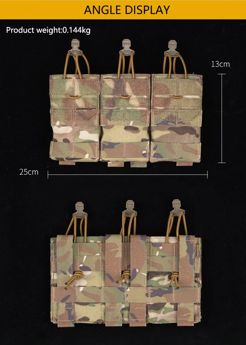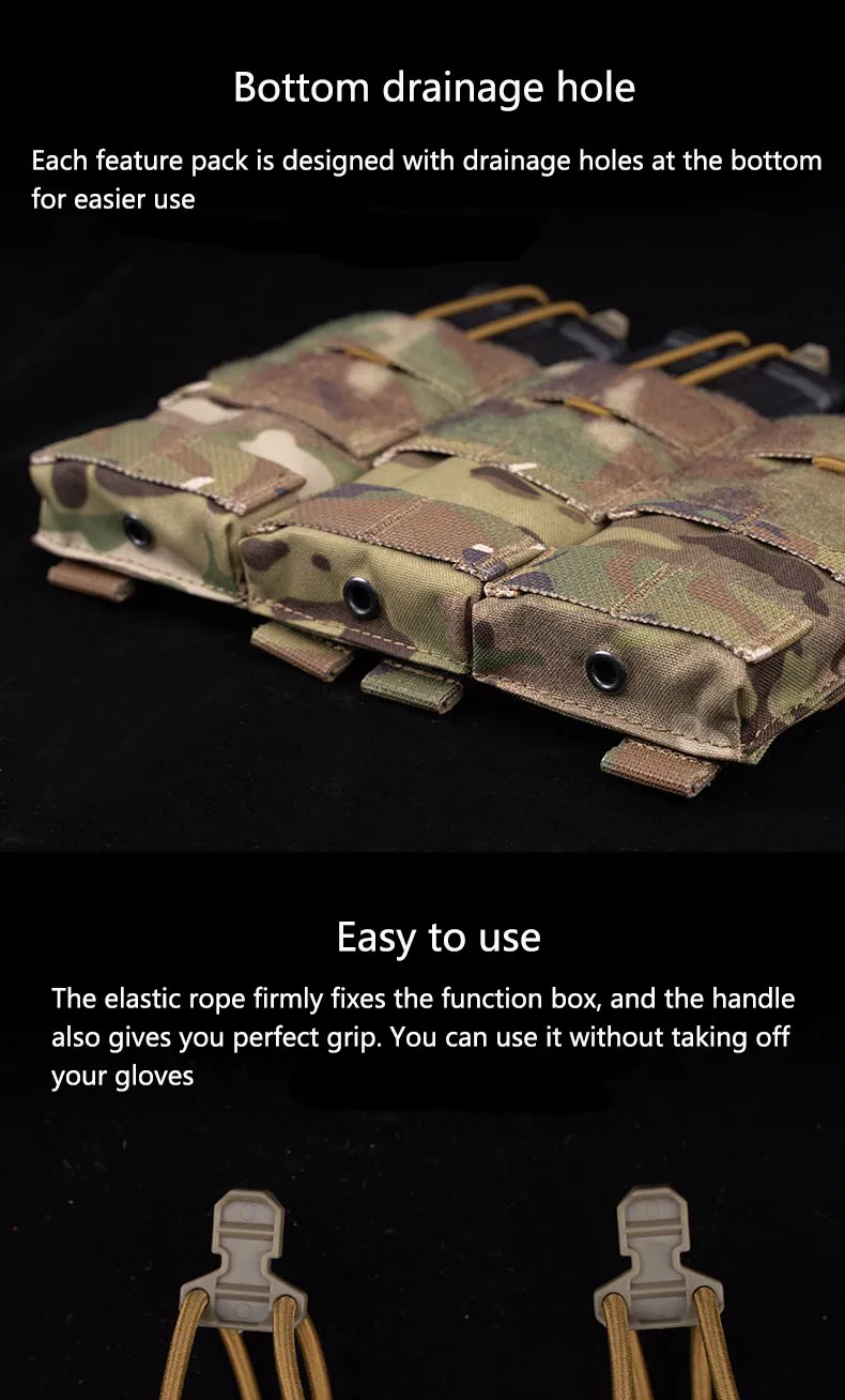 Paquete de tácticas para campo al aire libre, almacenamiento Molle de fijación, bolsa colgante, doble uso, bolsa con función de revista triple 5,56