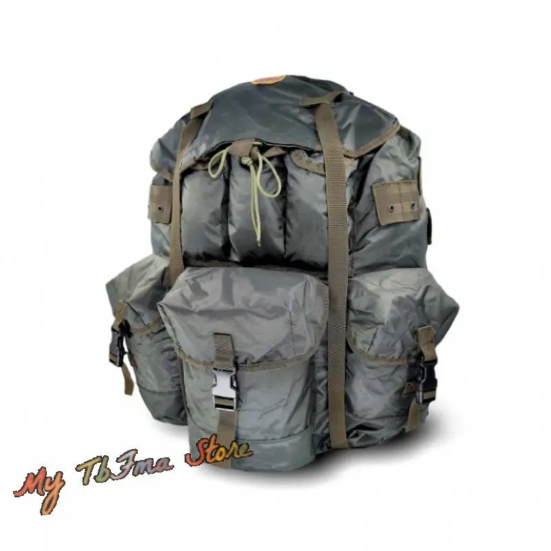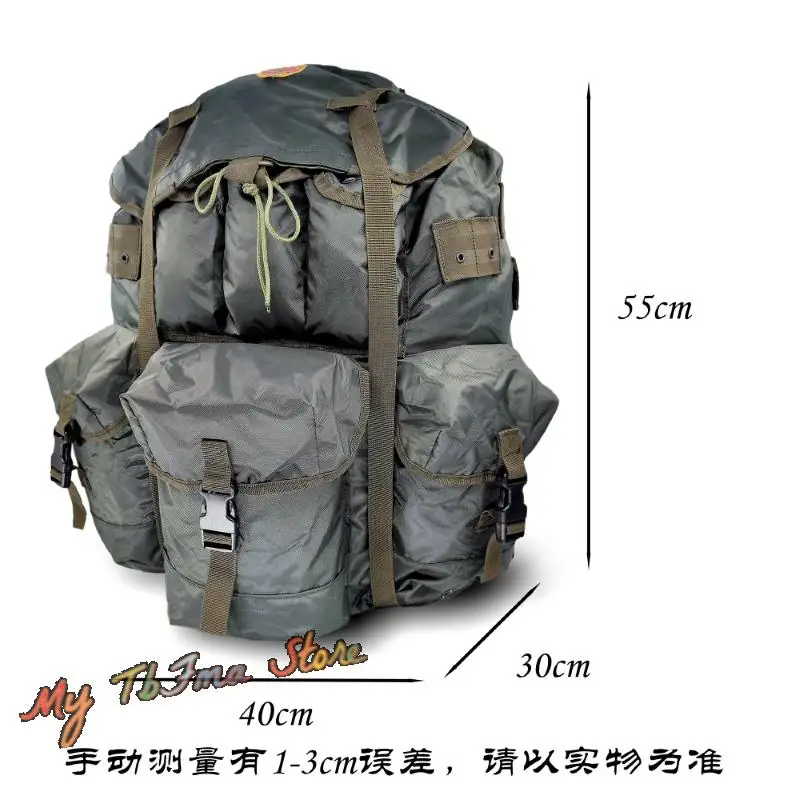 Mochila americana clásica.El peso total es de casi 2 kg, capacidad de 65 a 75 litros, tamaño aproximado 56*42*32 cm.