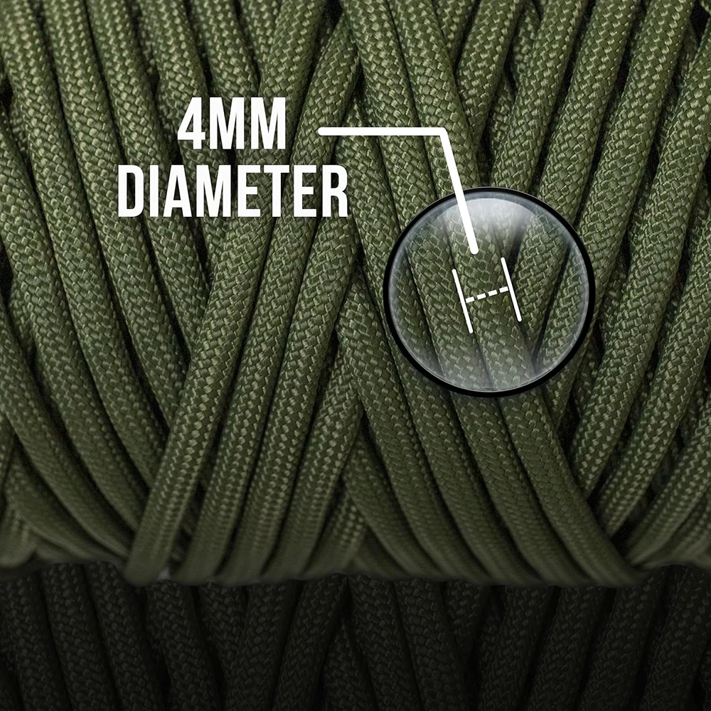 1. 【Alta calidad】Hecho de cuerda de nailon 100% y construido con una capa externa tejida de 32 hebras diseñada para soportar incluso las condiciones más duras. Nuestro paracord Delgado tiene solo 4mm de diámetro, lo que proporciona una gran resistencia en un tamaño compacto y conveniente que es ligero y empacable.