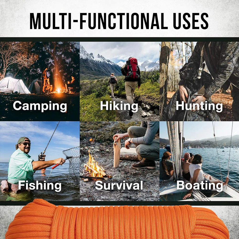 3. 【Paracord multifunción 】Independientemente de si está buscando un paracord para acampar, cazar, pescar y explorar el aire libre, nuestro paracord multiusos se adapta para satisfacer todas las necesidades. También son perfectos proyectos de manualidades de bricolaje como cordones, pulseras, agarres de herramientas, collares para perros y llaveros o para tener a mano para la preparación de supervivencia.
