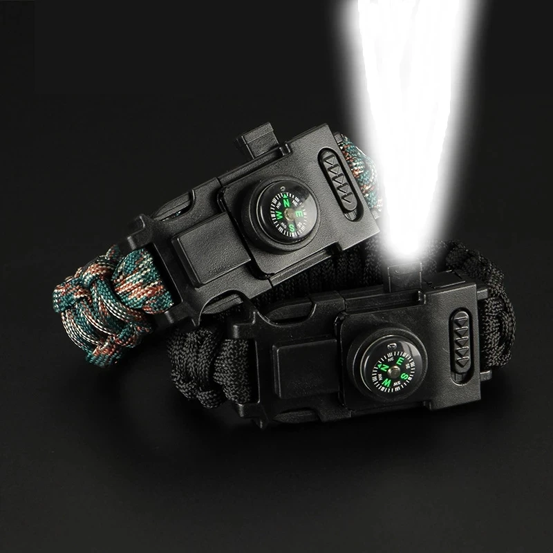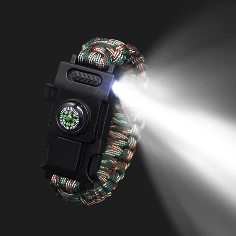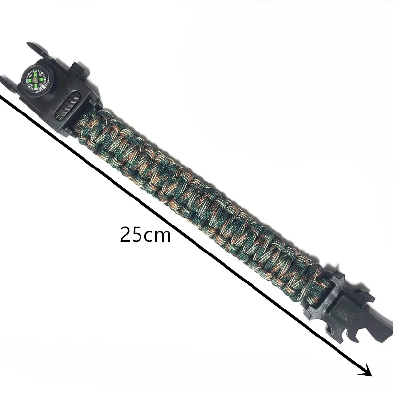 Como decoración en la vida cotidianaCon diseño de silbato en la hebillaResistencia a la rotura: alrededor de 550/249 kgLongitud de la correa: Por V. 9 pulgadas/25 cmUna pulsera de supervivencia le permite realizar varios pies de cuerda de paracaídas fácilmente, que se puede usar en emergencias.Es ideal para acampar, pasear en bote, cazar, hacer senderismo y más.El cable se puede utilizar para cualquier cosa que requiera una gran resistencia y durabilidad.Material: cordón de paracaídas y hebilla de plásticoEspecificaciones:1. Reparar la ropa rasgada2. Reparación de equipos rotos3. Plataforma de remolque4. Cuerda una línea de ropa5. Reemplace los cordones de sus zapatos6. Reemplace un tirador de cremallera roto7. Coloca una hamaca improvisada8. Atar zapatos de nieve9. Hacer hilo de pescar10. Asegure su barco11. Haz un cabestrillo para tu brazo12. La brújula puede ayudarle a identificar la dirección13. Silbato usado para sobrevivir14. Incline un sheiter de emergencia15. Luz LED Iluminación nocturnaNota:La luz y las diferentes pantallas pueden hacer que el color del artículo en la imagen sea un poco diferente del real.El error de medición permitido es/-1-3cm.Mejor uso: amarres, camping, mochilero, escalada, senderismo, montañismo, primeros auxilios, aventuras.